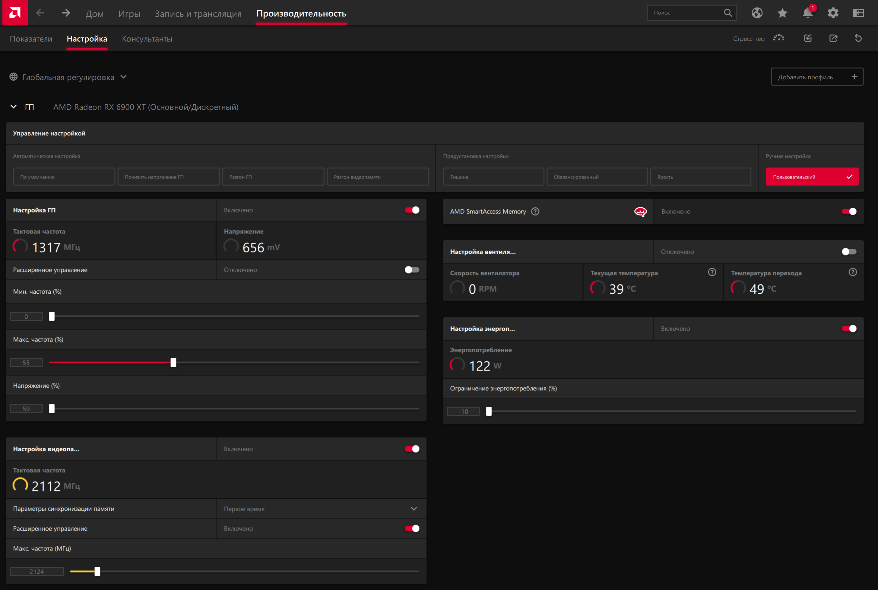 добрый день, - что о карте говорит gpu-z? - AMD Catalyst Mobility - это не драйвера для этой карты - вот ваши https://www.amd.com/ru/support/graphics ... rx-6700-xt - в настройках драйверов (адреналин) видны температуры/частоты?