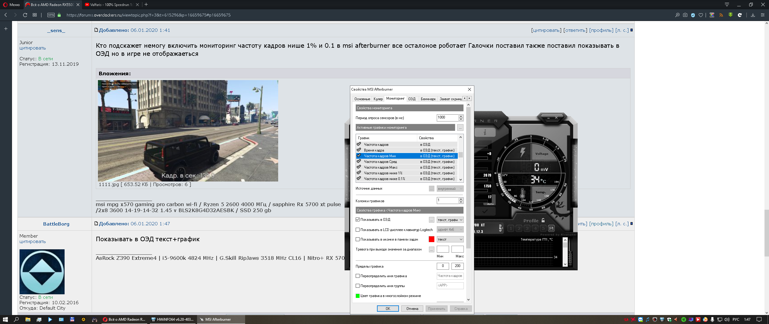 Кто подскажет немогу включить мониторинг частоту кадров нише 1% и 0.1 в msi afterburner все осталоное роботает Галочки поставил также поставил показывать в ОЭД но в игре не отображаеться