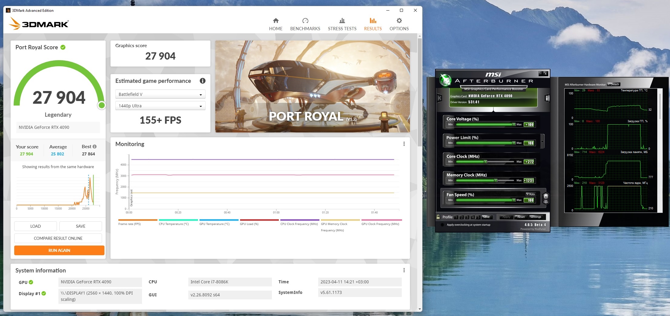 Да пока кроме как PR не во что не играл. Единственное разогнал процессор и память против дефолта. Карта мощная и разгон процессора/памяти дал +225score. На 3080Ti/3090 разницы не было в дефолте процессор/память или нет, результат одинаковый был .