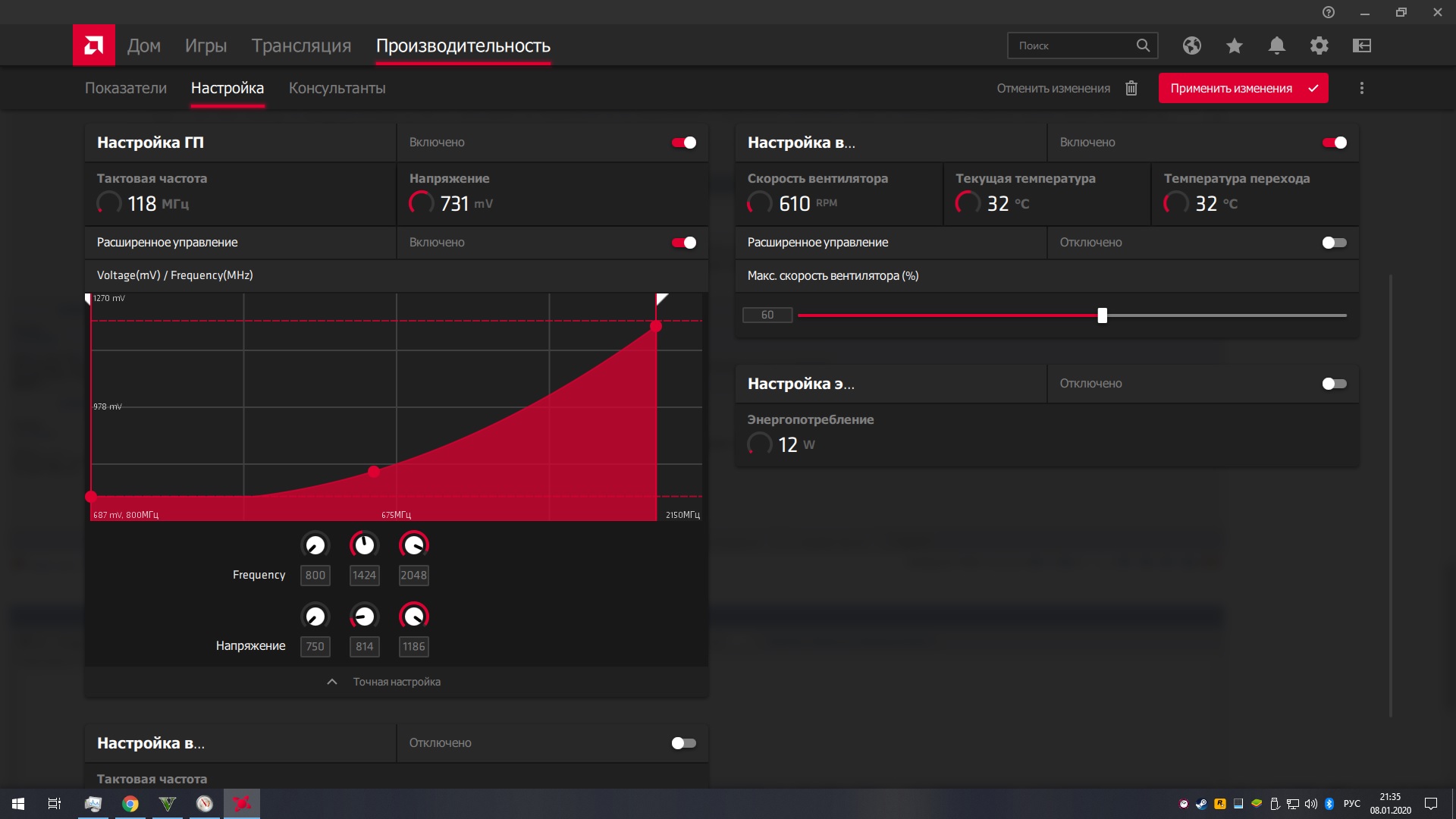 Подскажыте по настройка андервольтинга чтоб снить температуру ну и не потерять особо производительность в играх какой вольтаж можно поставить ? sapphire rx 5700 xt pulse