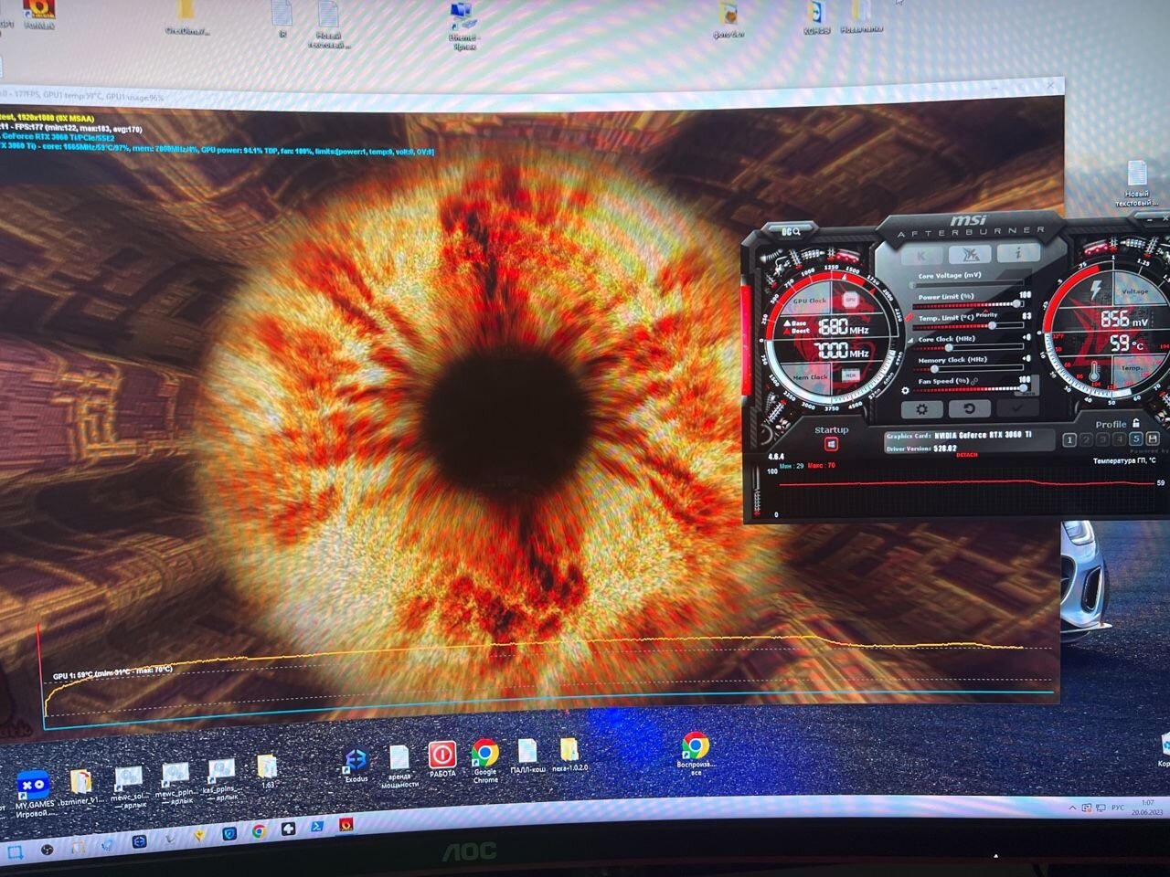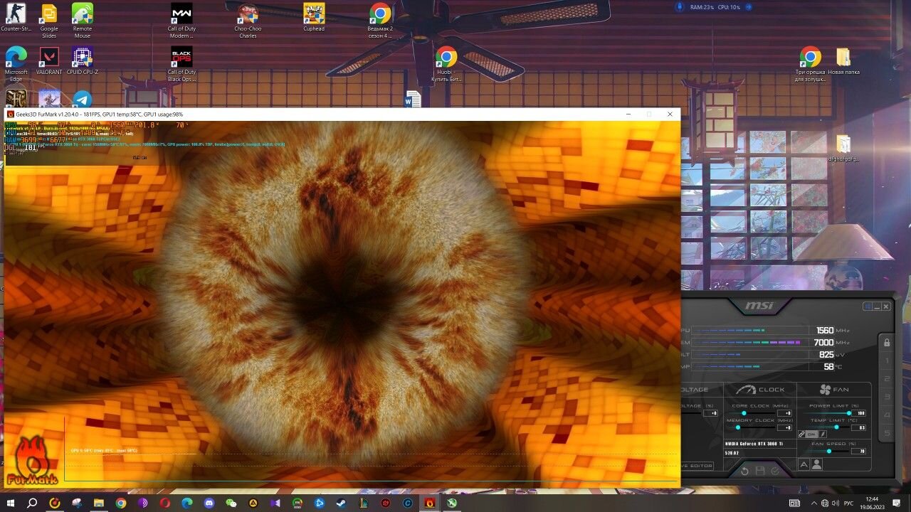 У MSI тоже самсунг. У колорфула был hynix. У колорфула была память hynix и вот что сказал продавец по этому поводу: Память самсунг? - Хуникс Говорят Hunix конкретно облажались с 3060ti - Не все партии и не у всех производителей - Где паганое охлаждение, там они выходят из строя За 24к был готов отдать, но во время разговора с ним, один чел заказал авито доставку и за 25.5 она уехала. Ещё температура в furmark со слов продавца не поднималась у карты выше 58 градусов при 70% работы вентиляторов (скрин делал с работающим MSI Afterburner, чтобы показать, что частоты и пр. параметры не занижал у видеокарты). MSI год в майнинге работала и с пылу с жара стресс тест. Про асус ничё не знаю.