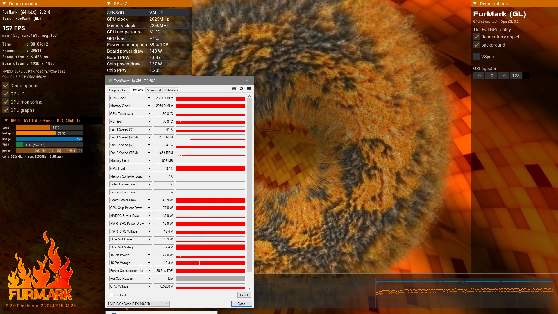 Соотвественно тестировалось это всё с лимитом как на 115Вт так и на 100Вт. На 4060Ti из коробки лимит непропорционально больше. Поэтому вам сложнее в него упираться и тяжёлые тесты позволяют тестировать хоть как-то эти режимы. Но смысла в этом всё равно относительно мало. Потому что нагрузку типа бублика вы НИГДЕ кроме бублика и ему подобных не найдёте. Сочетание лимита мощности с андервольтом в этом плане надёжнее и эффективнее. В играх будет немного больше производительность и частота. А насколько сильно оно при этом упирается в безлимитный бублик без разницы от слова совсем.