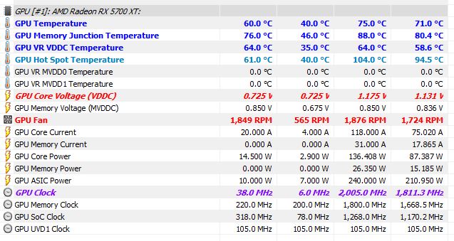 Спасибо, карта Nitro, должна быть холоднее если это температура гп. Я бы с удовольствием почитал всю тему, но завтра либо в сц либо на неделю отложить это дело. Попробую ещё уточнить что за температура, но в мониторинге стоит как температура гп. Ещё насчет вентиля сумасшедшего. После нагрузки в пол часа, при температурах за 70, при перезагрузке вентиль ведёт себя хорошо как и остальные. Стоит карте остыть, и начинает опять дурить
