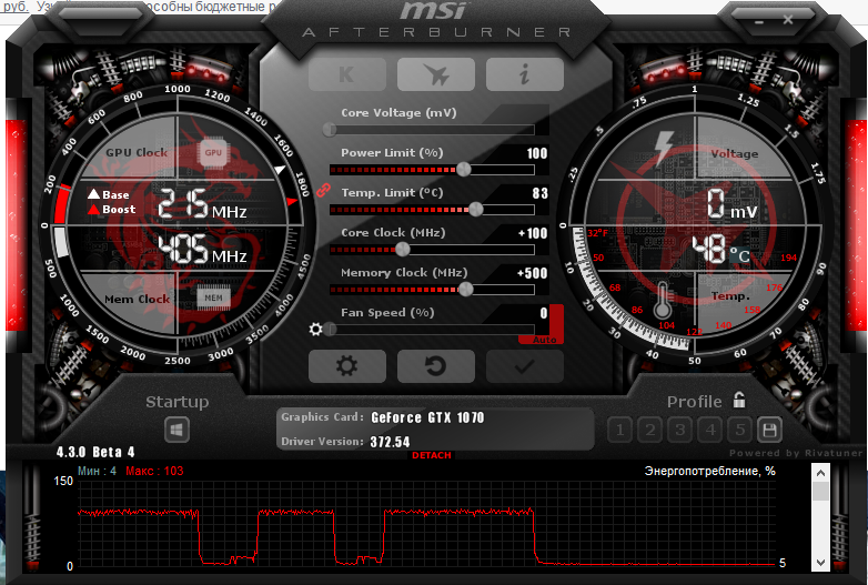 Температура видеокарты MSI GeForce GTX 1070 GAMING X 8 Гб GDDR5 в простое (браузер открыт) 37°-39°. А после теста до 42° остывает и так на 42° и держится. Это нормально? Видеокарта ASUS GeForce GTX 780 3 Гб GDDR (что заменил), и то в простое меньше грелась 31°-33°. Но на ней конечно вентилятор вращался, хотя и на минимальных оборотах (на авто). Может включить на MSI GeForce GTX 1070 GAMING X 8 Гб GDDR5 вентиляторы на постоянное вращение? И что то меня смущает, что вентиляторы начинают вращаться только тогда, когда температура превышает 60°.