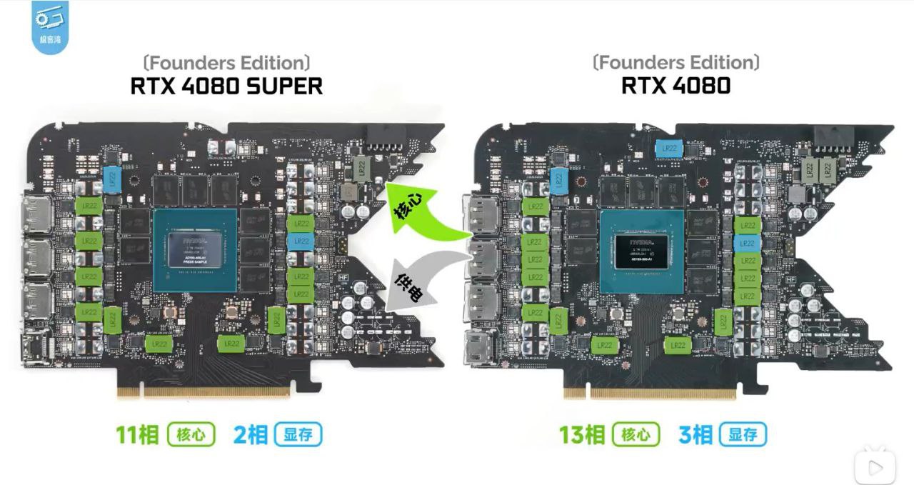 Сравнение PCB RTX 4080 FE и RTX 4080 Super FE