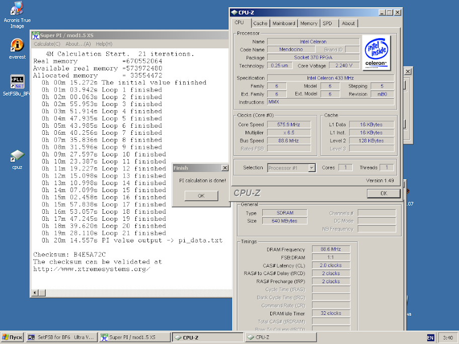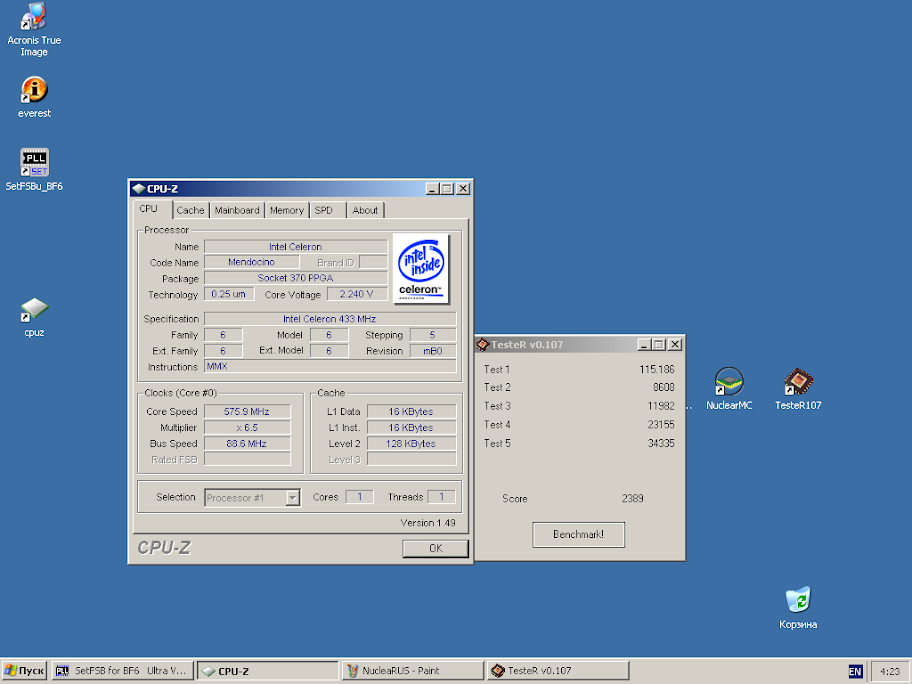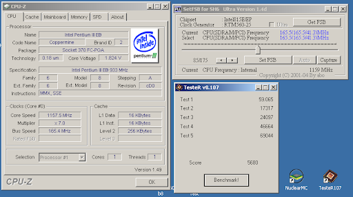 CPU: Pentium III (0x683: Coppermine B0) 800@110x8=880MHz, Ucc=1.75V