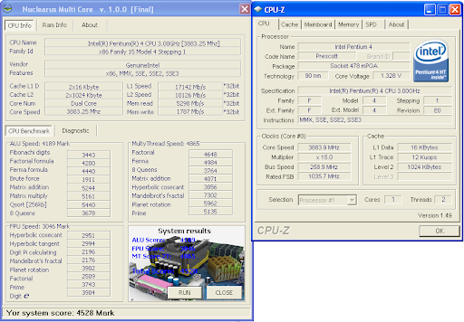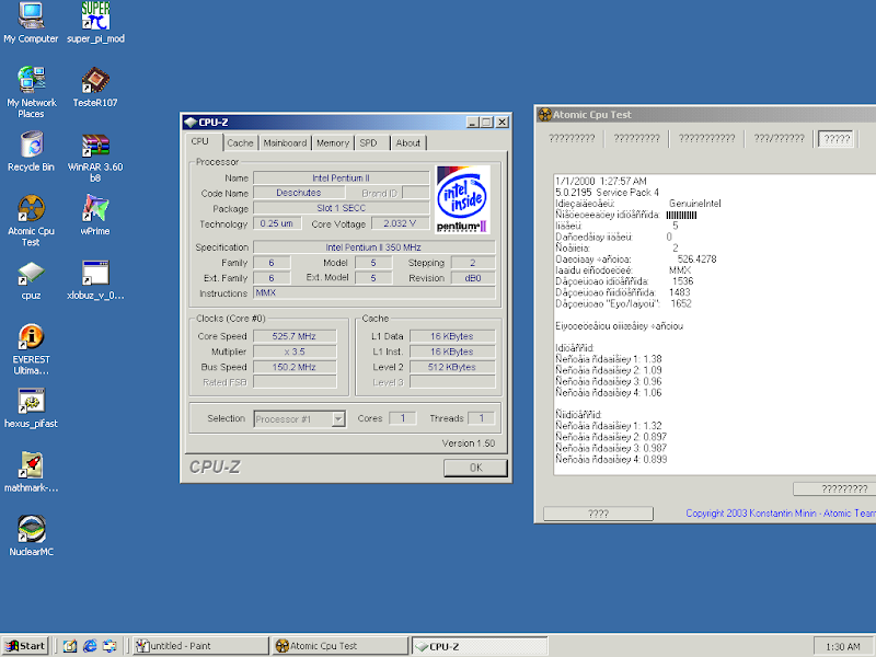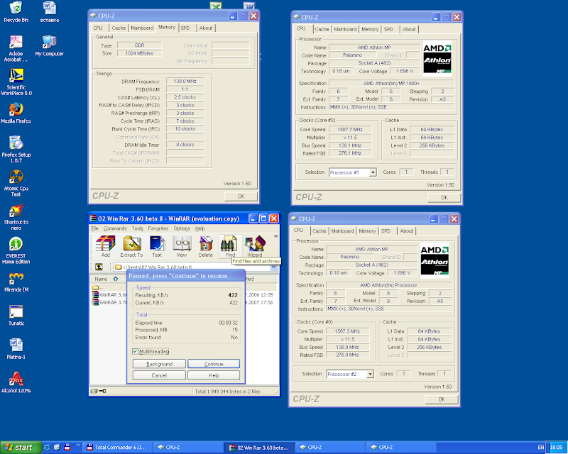 *1) WinRAR 3.6х (в многопоточном режиме) *2) Nuclearus Мulti Core *3)Universal CPU Benchmark *4)aptest инструкция по запуску - в файле readme.txt, который содержится в архиве. 5) 2 X Superpi 4m 6) OAK Mathmark