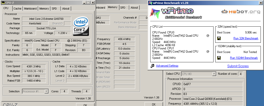 2) Прикрепить скриншот в котором есть только: =>окна CPU-Z на вкладке CPU и Memory =>окно wPrime.