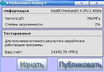 Это точно стеб какой-то. Со включенным Task Manager'ом дает на 5к больше попугаев. Автор, пеши еще бенчмарков . Мог бы хотя бы сказать, на чем основывается алгоритм, а то люди тестируют вот, разочаровываются в ЦП своих .