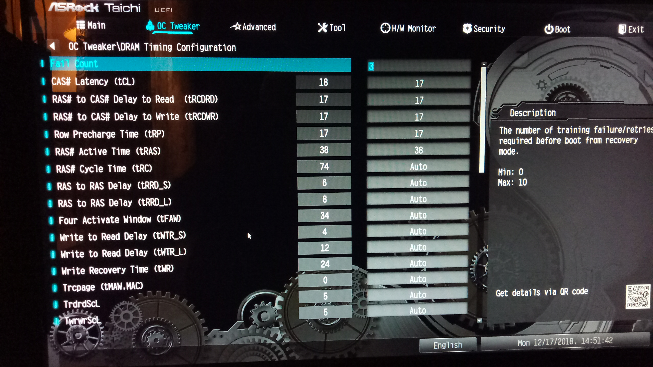 Подскажите пожалуйста тайминги и вольтаж для 3200 mhz память Samsung DDR4 2400 8GB M378A1K43BB2-CRC (2 планки) Процессор Ryzen 2600 Материнская плата Asus x370 prime pro (Bios - 4024)