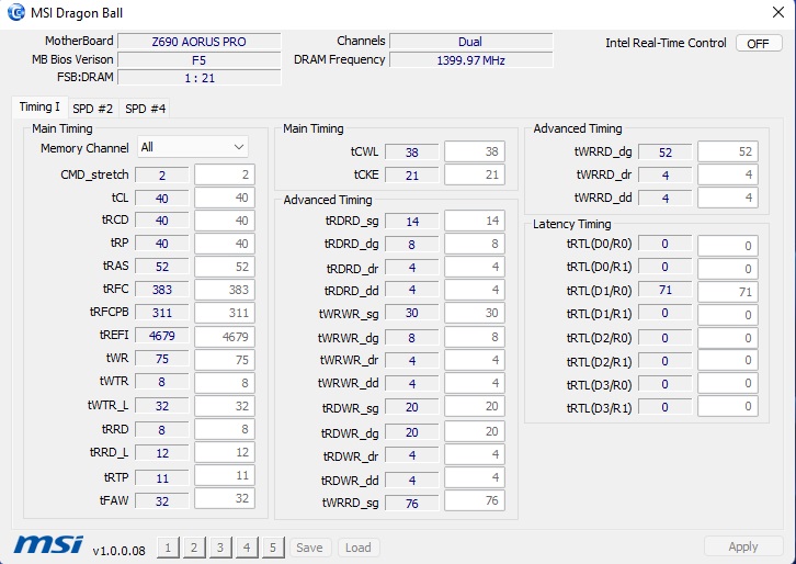 Добавлено спустя 7 часов 50 минут 49 секунд: Изучил скриншоты от Сергея. MSI dragonball и Asus memtweak показывают одинаковые тайминги, от установленных в биосе отличаются WTRS и WTRL, программы их считают по-своему и с ошибкой.