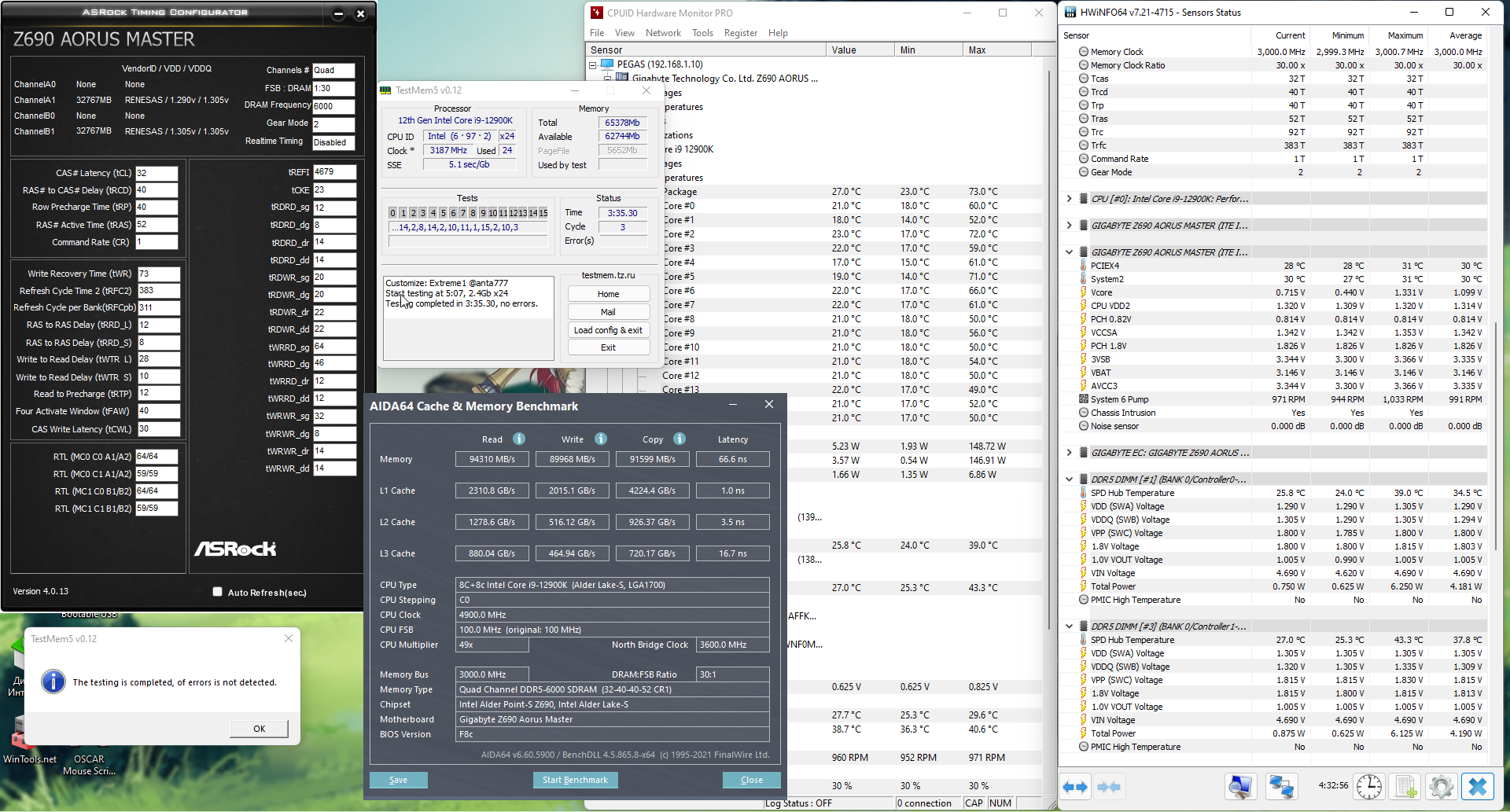 Всем доброго времени суток! Столкнулся с непонятным наблюдением. Повредил ножки на сокете, их починили перепайкой. Профиль , что был до происшествия(6400 выкладывал тут раньше), перстал быть стабильным (что до ремонта, что после). Удалось его стабилизировать уменьшением нарпяжений SA и памяти (c 1/1.44 до 0.95/1.42). Интересно, что могло измениться, что повышение напряжения ухудшает стабильность. Вполне возможно , что и до поломки, профиль бы был стабилен на 0.95\1.42 - я просто не успел притупить к уменьшению напряжения.