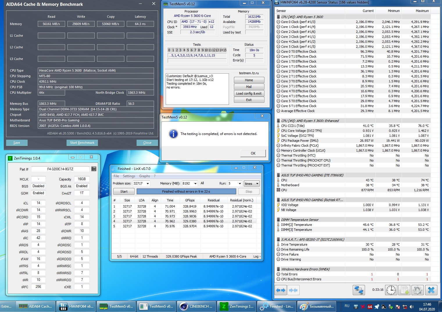 Здравствуйте, товарищи! Имеется в наличиии память G.Skill TridentZ F4-3200C14D-16GTZ, выпуск март 2020г. Разгон памяти 3733-14-15-14-14-28-42-1Т. Настройки/тесты прилагаю. Вопрос: какие тайминги нужно подкорректировать, а главное как понизить tRCDRD=15 до tRCDRD=14?