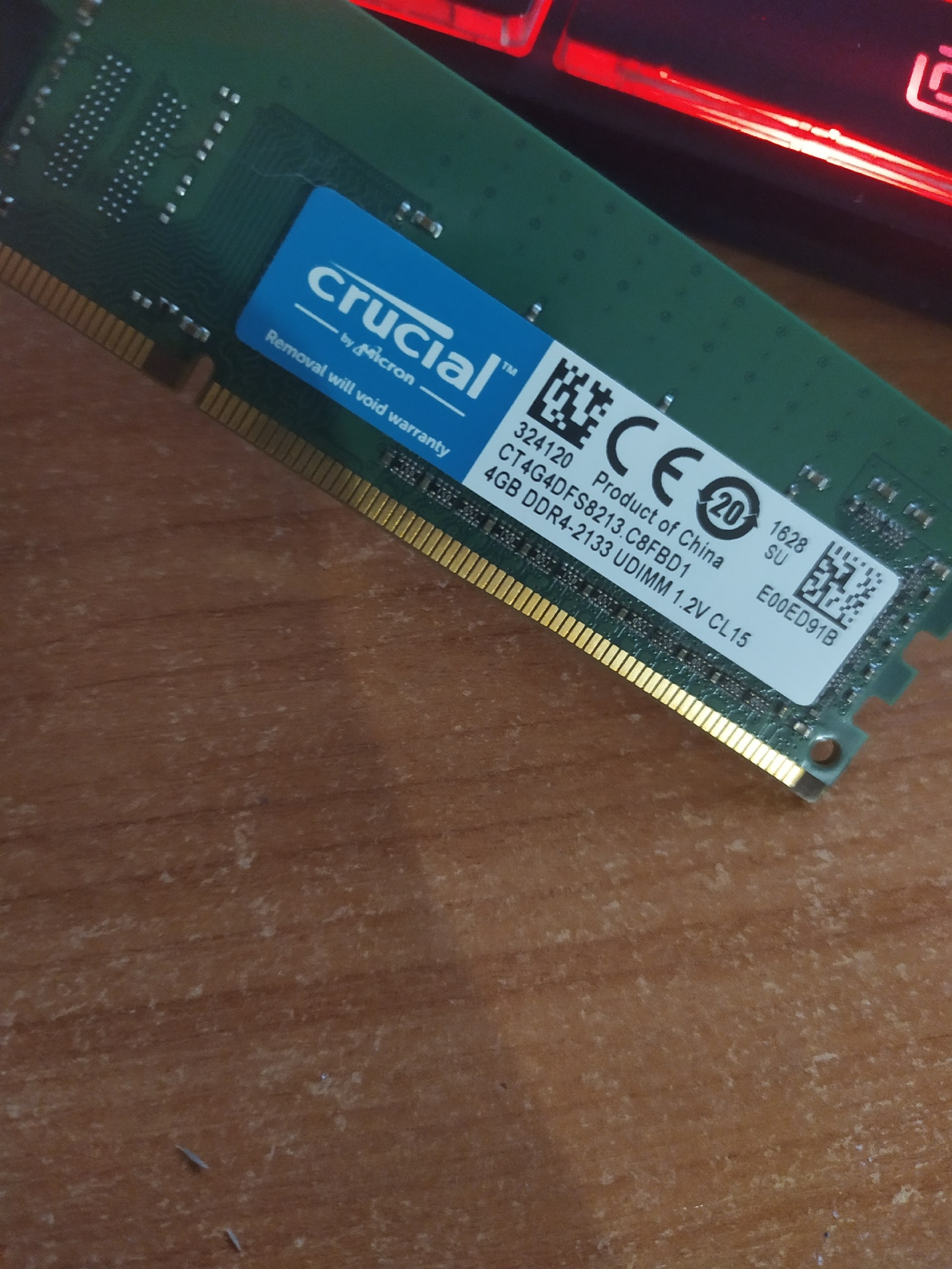 Всем привет! Сильно не бейте, если глупые вопросы буду задавать. На компе стоят 2 планки памяти "crucial 4gb ddr4-2133 udimm 1.2v cl15" (фото приложу). Захотелось дополнить, поставить еще 8гб. Поехал в ***, показал консультанту характеристики старых планок, подобрали мне нижеследующий товар : "hyperx 8gb ddr4 2400 cl15 288 pin udimm" 1шт. (фото приложу).