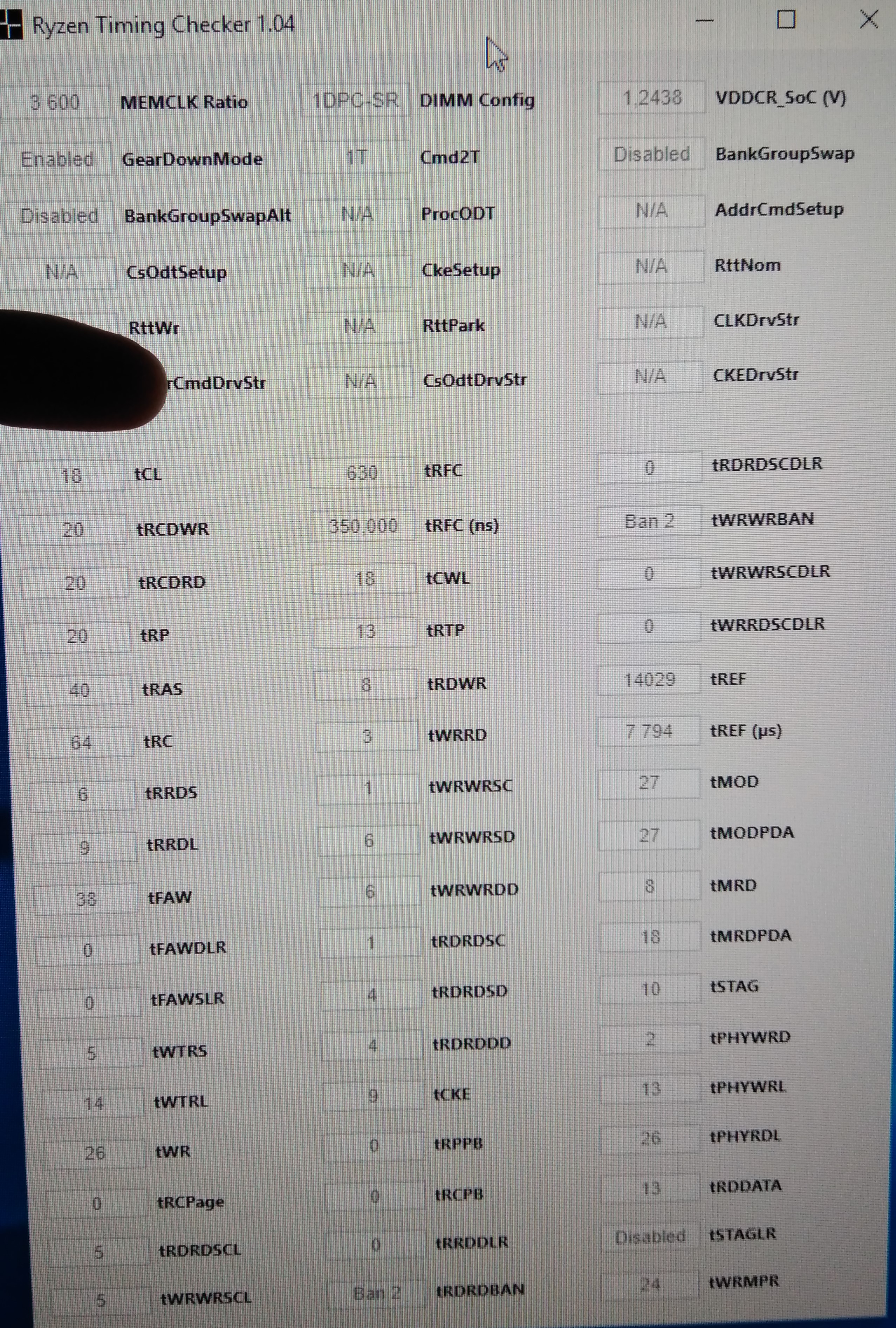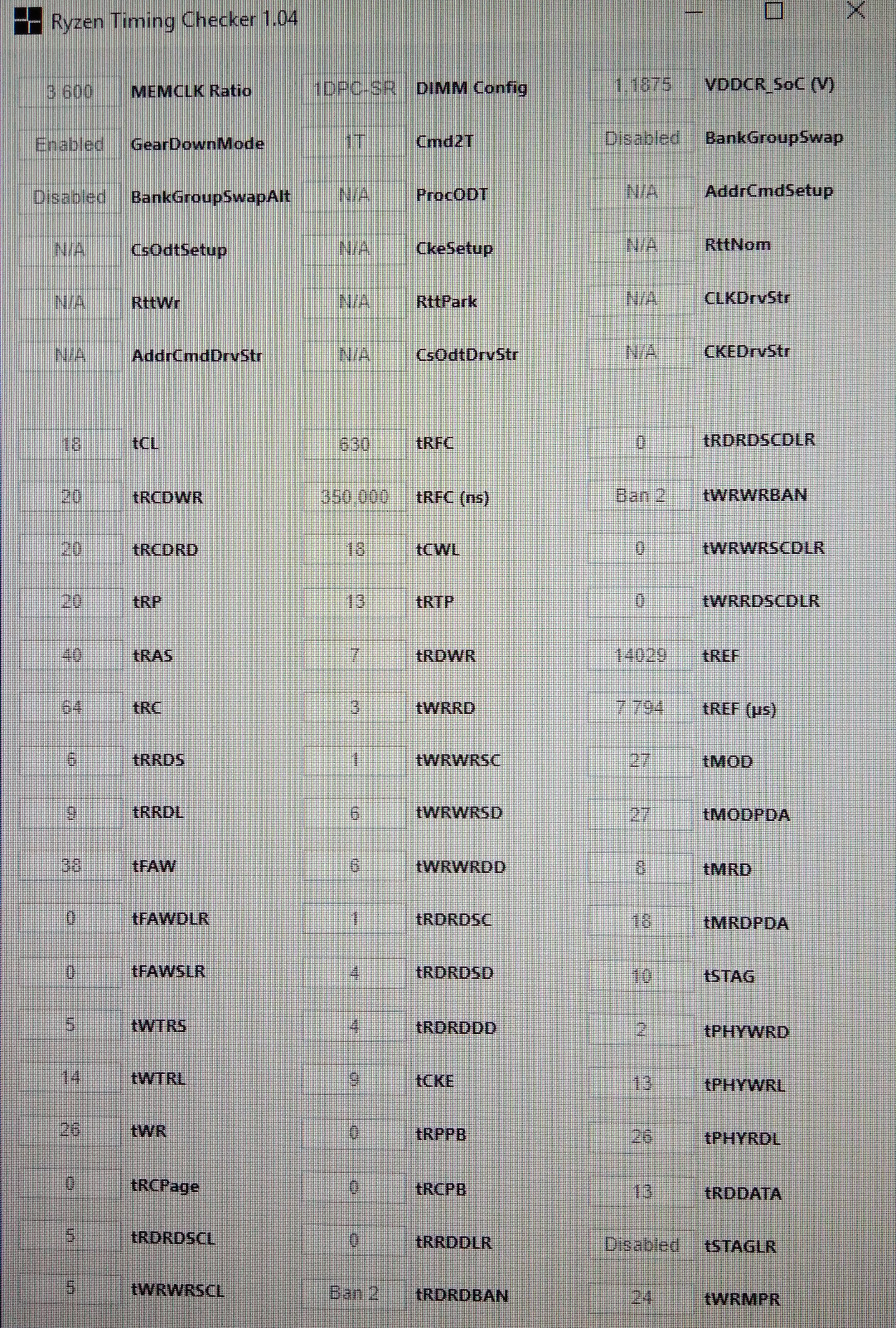 Chereb У меня нет асрока для асроковского тайминг чекера) я даже не знаю что тебе посоветовать, потому что память у тебя явно отличается от стандартных hynix, её только вручную гнать. Тайминги попробуй из райзен калбкулятора Hynix mfr пресет фаст для 3200, только основные тайминги оставь как есть, и tCWL сделай как CAS. Если калькуляторное не поедет,то напряжение подними. А вообще её бы ручками гнать, она явно лучше аналогов