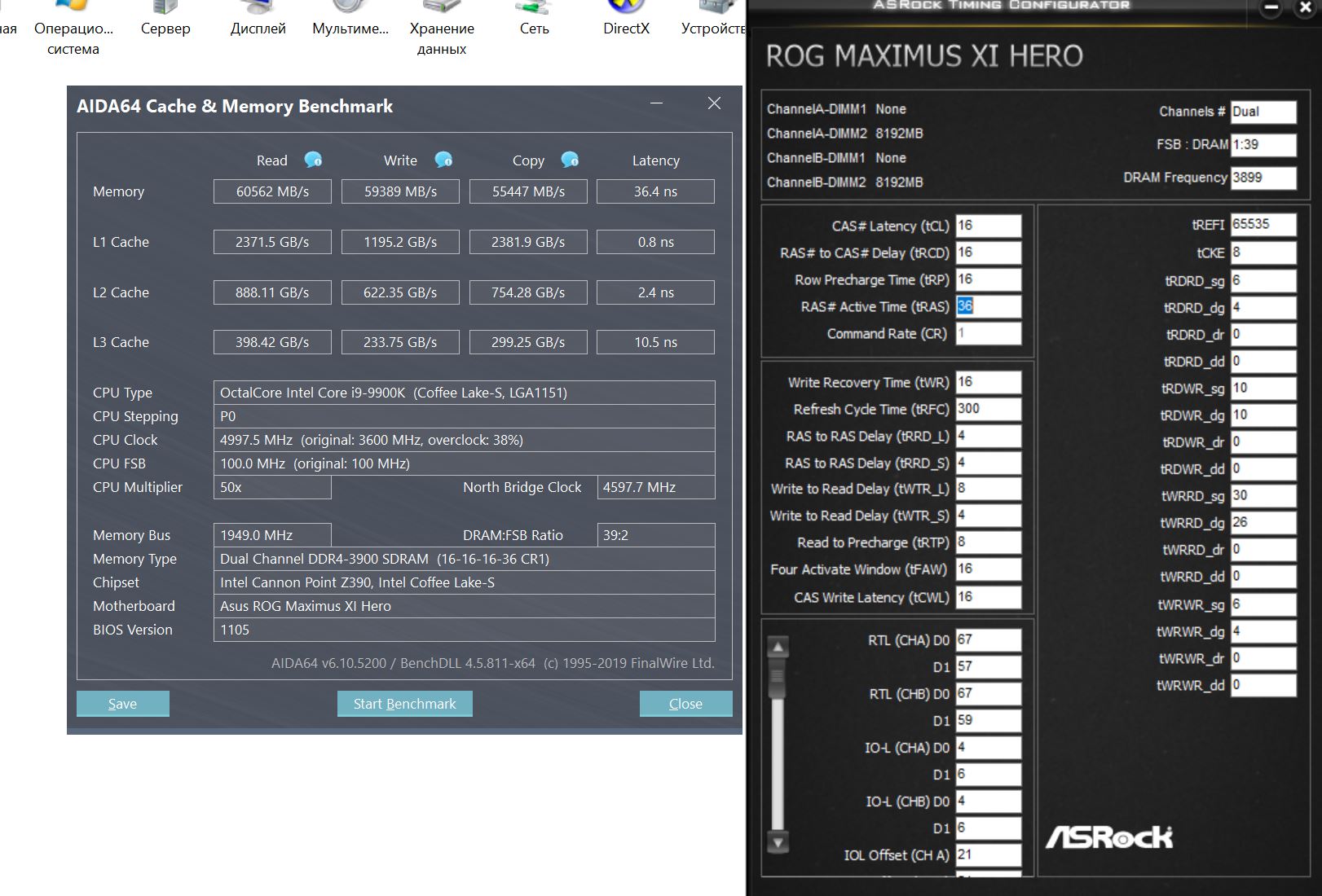 Начните с RCD, CL. Не обязательно должны быть одинаковыми, обычно CL идёт меньше чем RCD. RAS сразу пробуйте как RCD+CL+4, до этого значения от него существенная разница, дальше меньше. CWL<=CL. Допустимые значения 9,10,11,12,14,16,18,20. RP можете выставить по RCD, если пойдёт меньше - тоже неплохо, не уверен правда насчёт смысла. RTP без формул. Если не идёт вниз можно попробовать поднять чуть чуть RP. В DDR4 явно связан с WR соотношением 2 к 1 (например WR20\RTP10), физически хранится одно значения и в зависимости от операции интерпретируется. Скрутите FAW до 16(так и оставьте если работает). С таким FAW скручивайте RRD(оба, L обычно больше чем S), возможно поедут на 4 оба. Если до 4 не удалось спустить поднимите FAW до уровня RRDL*4 и попробуйте ещё, хотя это скорее всего уже почти предел. Обычно L>=S. L - SG(Same Group). S - DG(Different Group) Напр. RRD_L>=RRD_S. CKE=5 СCDL>=4 RDRD_DD и прочие подобные можно проигнорировать если у вас нет двух планок на один канал (4 планки). DD-Different Dimm. Тоже самое с DR-Different Rank если у вас одноранговая память. RDWR_SG(DG) и подобные сочетания скручивайте до минимальных рабочих, потом накиньте сверху +2. Как уже отметил обычно SG>=DG. WTR не трогайте он сам спустится когда будете скидывать WRRD_SG(DG) и прочие подобные. Если сам меньше не стал тогда руками скидывать. WR снижать через WRPRE если есть. Если нет или не снижает WR, То скрутите его скажем до 12 или +4 от рабочего, потом дожмёте если не лень будет. RFC явных формул нет, крутить после всего списка сверху. Не пытайтесь найти его минимальное значение если не хотите чтобы память начинала сыпать ошибками от любого чиха. найдите пограничное со стабильностью значение и накиньте сверху 20 или сразу 40. Может реагировать на RAS+RP, RRD, FAW, причём в обе стороны (то есть может "сломаться" если задрать названные), а может и не реагировать... REFi больше лучше. Связан с RFC. REFI сколько память "работает" - RFC сколько "отдыхает". Оба тайминга лучше не пытаться найти предельное значение.Заметно реагируют на температуру. Многие тайминги отзываются и на температуру и на напряжение. Поскольку напряжение может как позволить снизить тайминг, так и увеличить температуру, то середину можно искать очень долго, поэтому лучше бы вовремя остановится. Тестируйте тщательно с перезагрузками, сном, холодным стартом. RTL и IOL вам кто-то другой пусть советует как настраивать, от них у меня голова болеть начинает...
