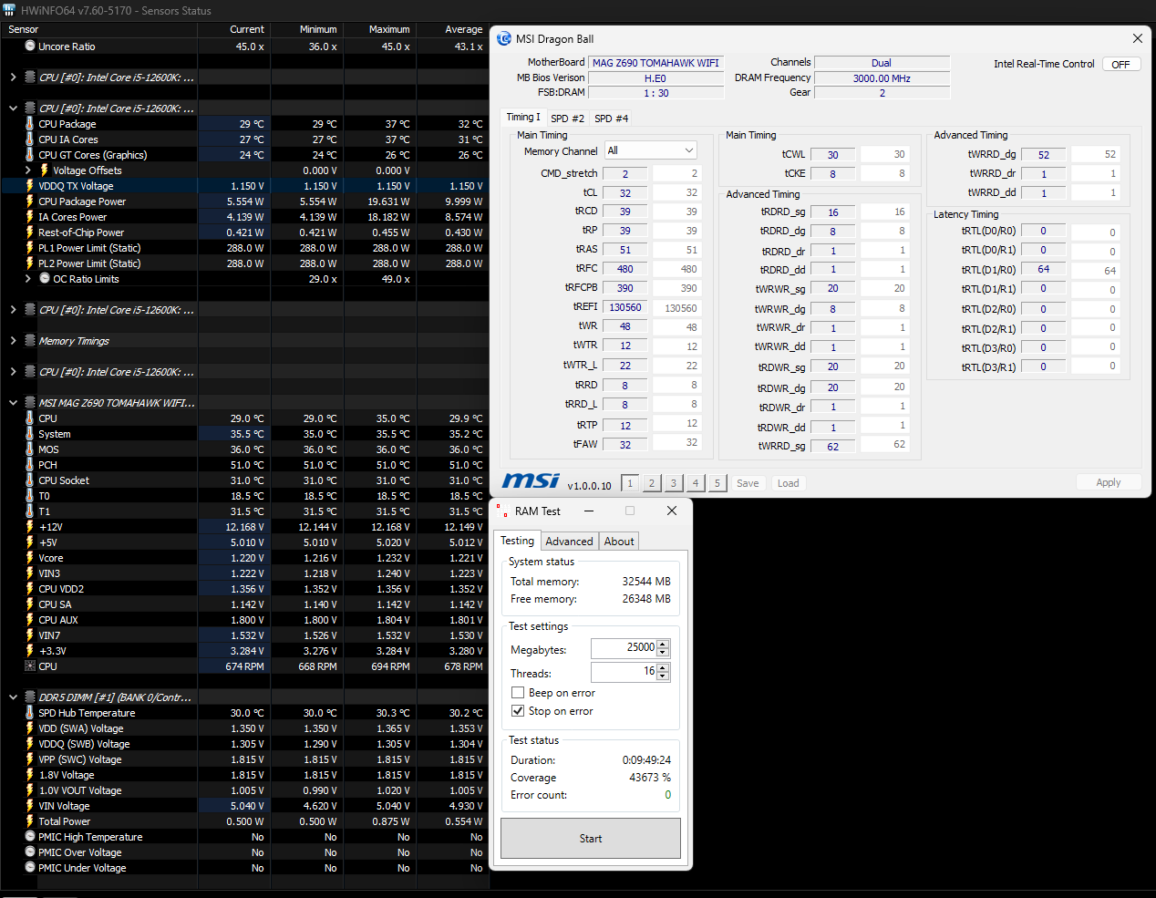 F5-6800J3445G16GX2-TZ5RK 12400f Asus z690 tuf plus/Asus z690f