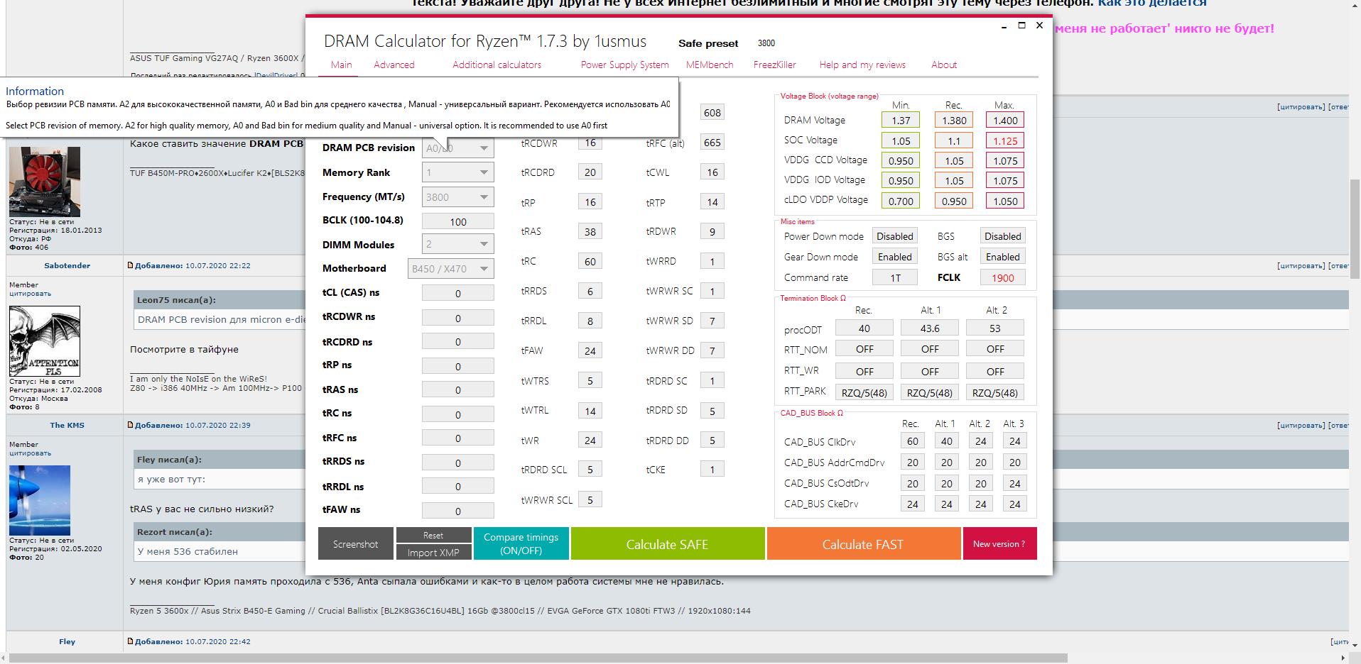 До выхода этой версии калькулятора, я даже на 1.45 не мог заставить работать эту озу на цл14. Только вот латентность печалит.... Вот на все сто рабочий конфиг: