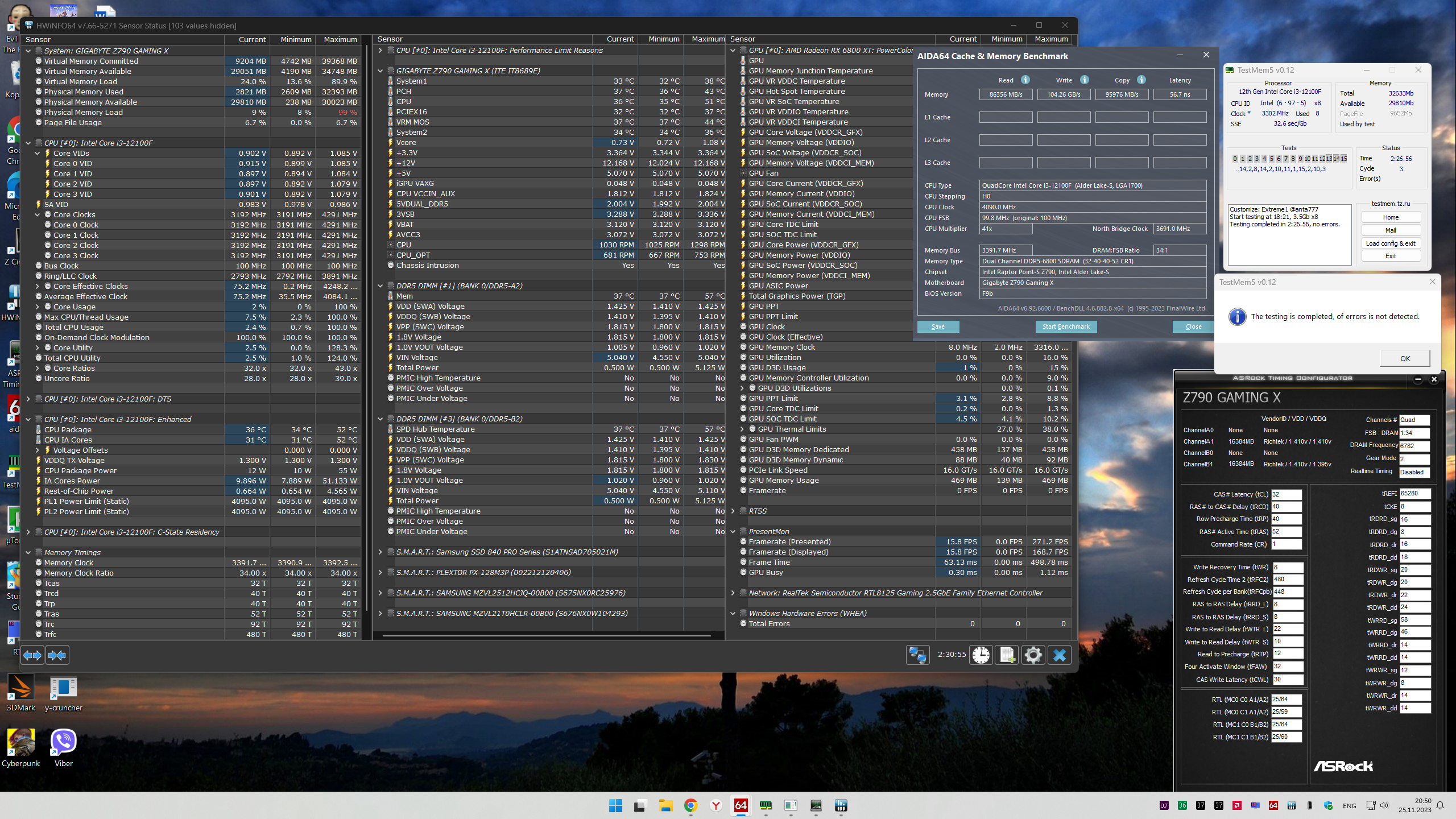 Системная плата: Asus ROG Maximus Z690 Extreme, latest bios: 2802 CPU: 8C+8c Intel Core i9-12900K RAM: F5-6400J3239F48GX2-TZ5RK 4 шт.