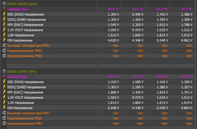 Всем добрый день. Вчера при тестировании в кранчере(FTT и VT3) заметил такую разницу двух плашек в макс температурах. Периодически, в хвинфо, датчик на планке с более высоким значением отключался. Насколько это критично и стоит ли какие меры предпринять?