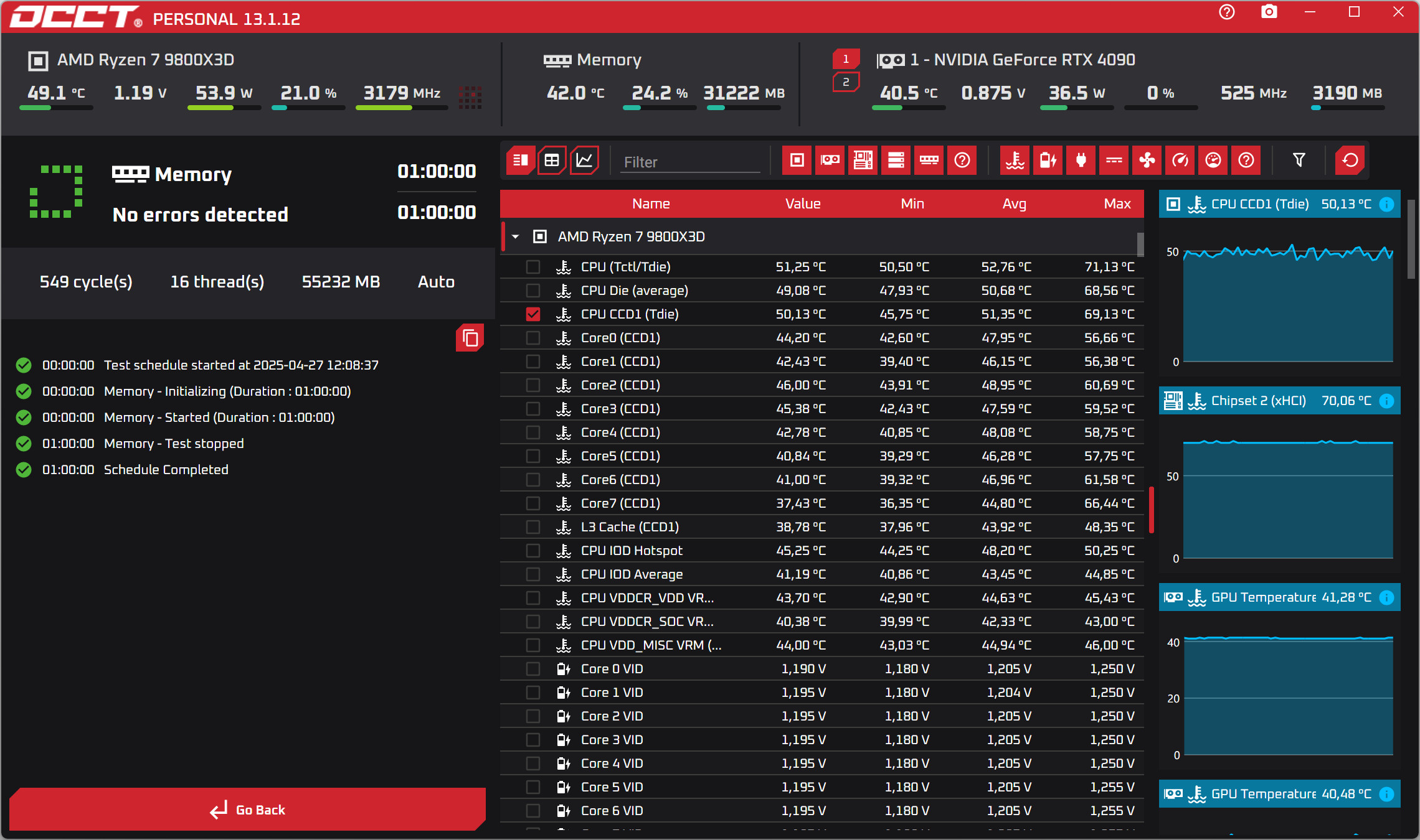 Пока было время пройти OCCT, но поправка в плане tRFC? поменял его на тот, что прописан в памяти для частоты 4800. Остальное автоматом. Остальные тесты сброшу как будет время. Кто бы подсказал, что ещё поменять чтобы выжать больше скорости копирования.