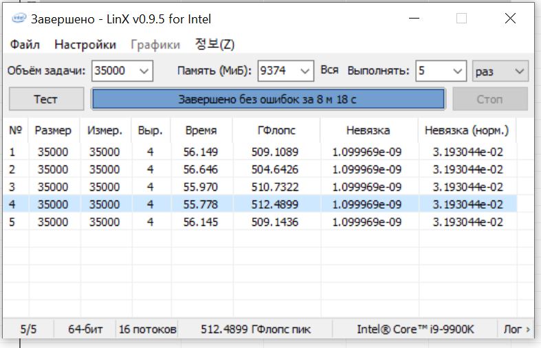 P.S. Странно, что у вас 9700к с настроенной памятью дает так мало флопс. У меня стоковый проц с разогнанной памятью дает на 40 флопс больше.
