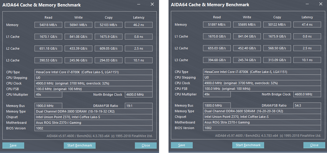 Здравствуйте, уважаемые оверклокеры! Пишу с проблемой. Конфиг: 8700k после скальпа 5.1ггц 1.36в z370 asrock extreme 4 память - cmk32gx4m4b3466c16 две планки из этого набора на b-die Собственно сама проблема в том, что память отказывается запускаться даже на xmp профиле. Память заведомо рабочая и брала на x299 4ггц. Убирал разгон проца. Накидывал vccsa до 1.3 и vccio до 1.2, саму память до 1.45в. Выше 3100 не хочет запускаться. 3100 с полпинка на 14-15-15-32 запустилась. В чем может быть проблема? Заранее спасибо!