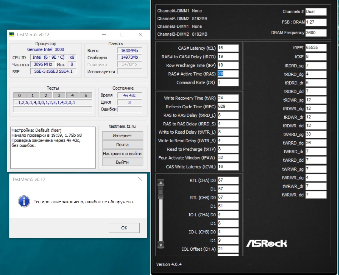 Ребятки, предел? Работает стабильно, ТМ5 проходит. Стоит пытаться что то уменьшить? Не нравится скорость копирования. RCD не уменьшается ни в какую, сыпет ошибками. ЗЫ Что то эта утиль Асроковская завышает реальные тайминги некоторые на 1, CWL, WTR-S, WTR-L
