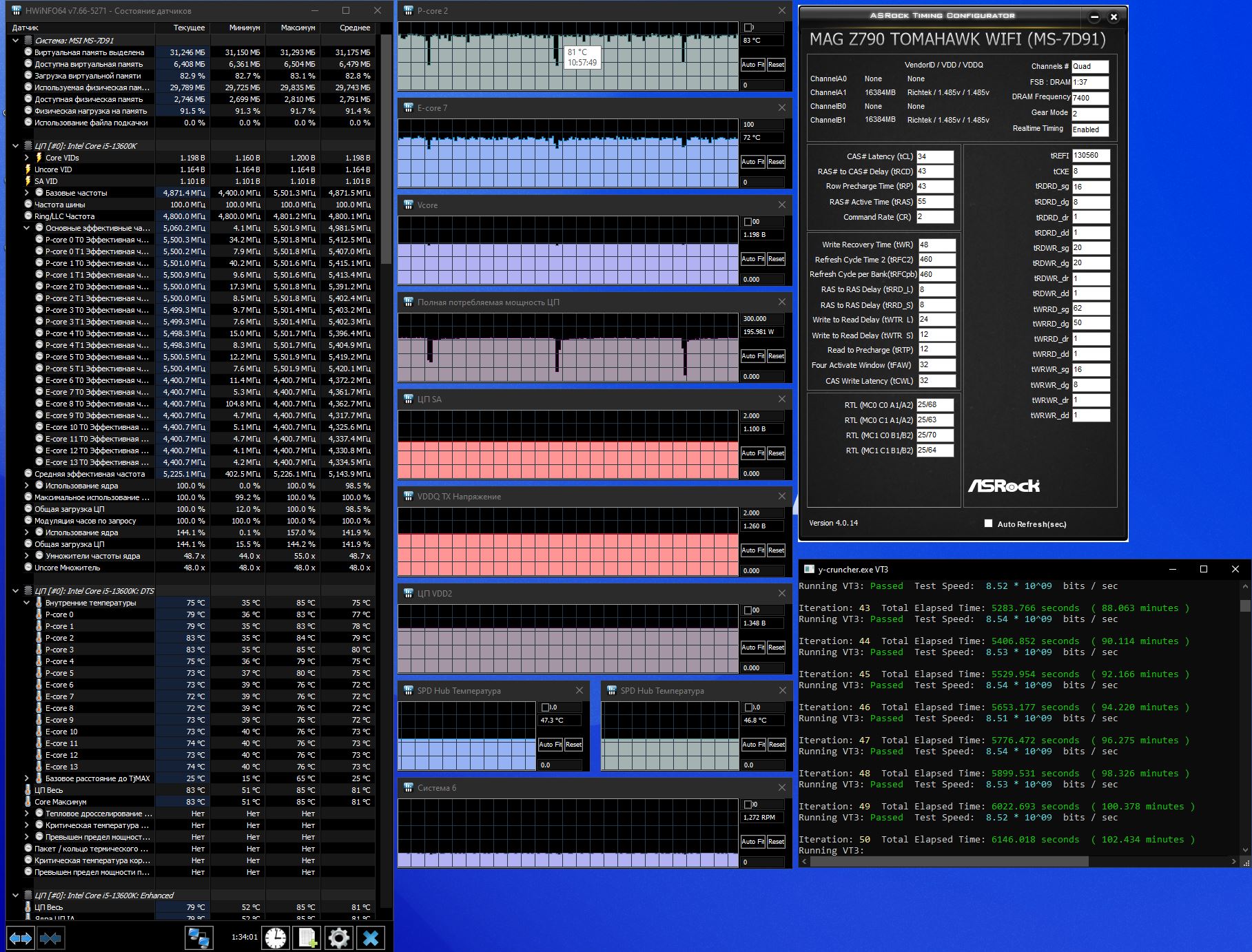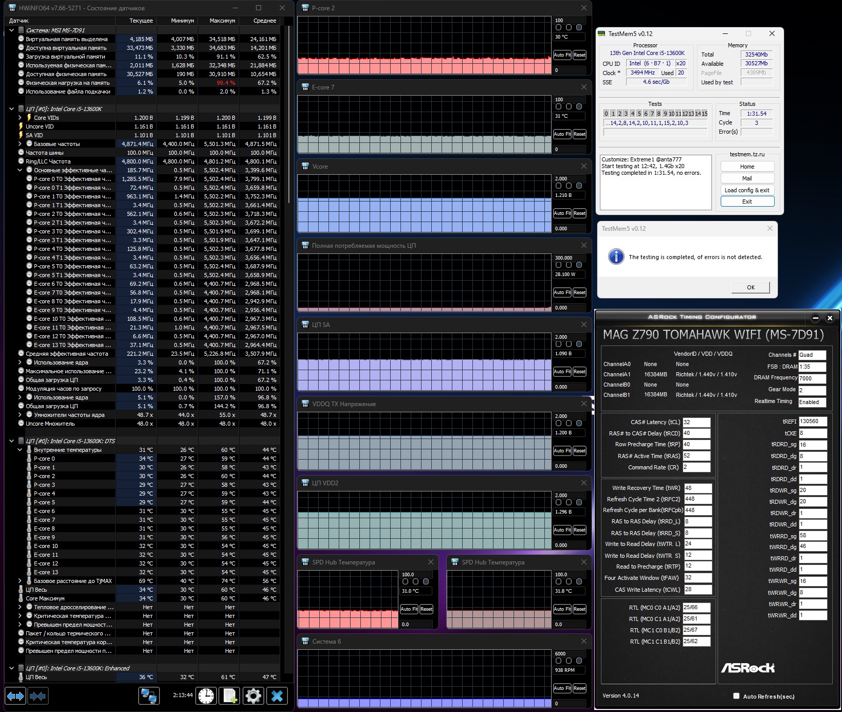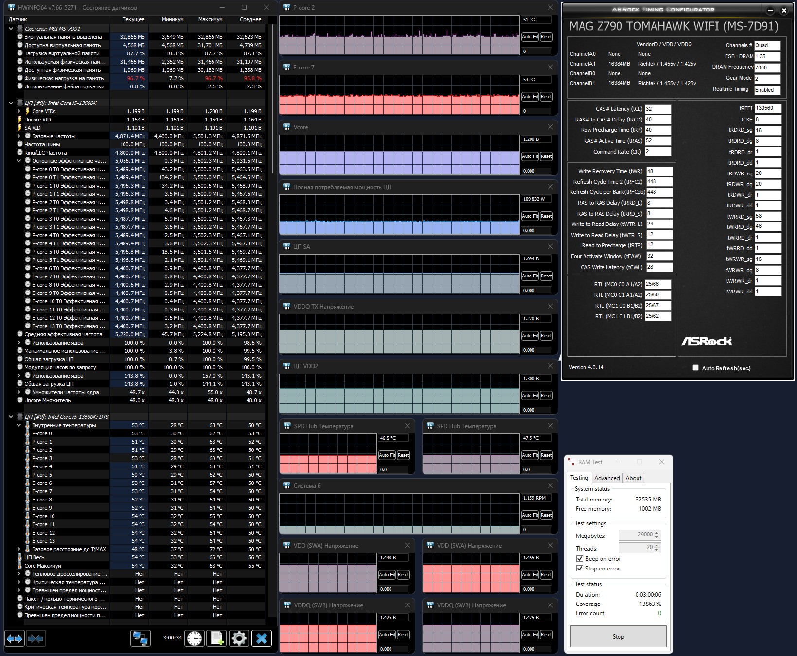 Есть исключения. Как и говорил ранее у знакомого на про п 7466 32-44 стаб, камень продал уже правда, но скрины есть. Я пока скромно 7400 34-44 настраиваю. Времени мало к сожалению, не могу тесты дольше погонять, в играх типа БФ 2042 все гладко. Скрин с мтр пока опустил Trefi до 65к, решил ниже rfc сделать
