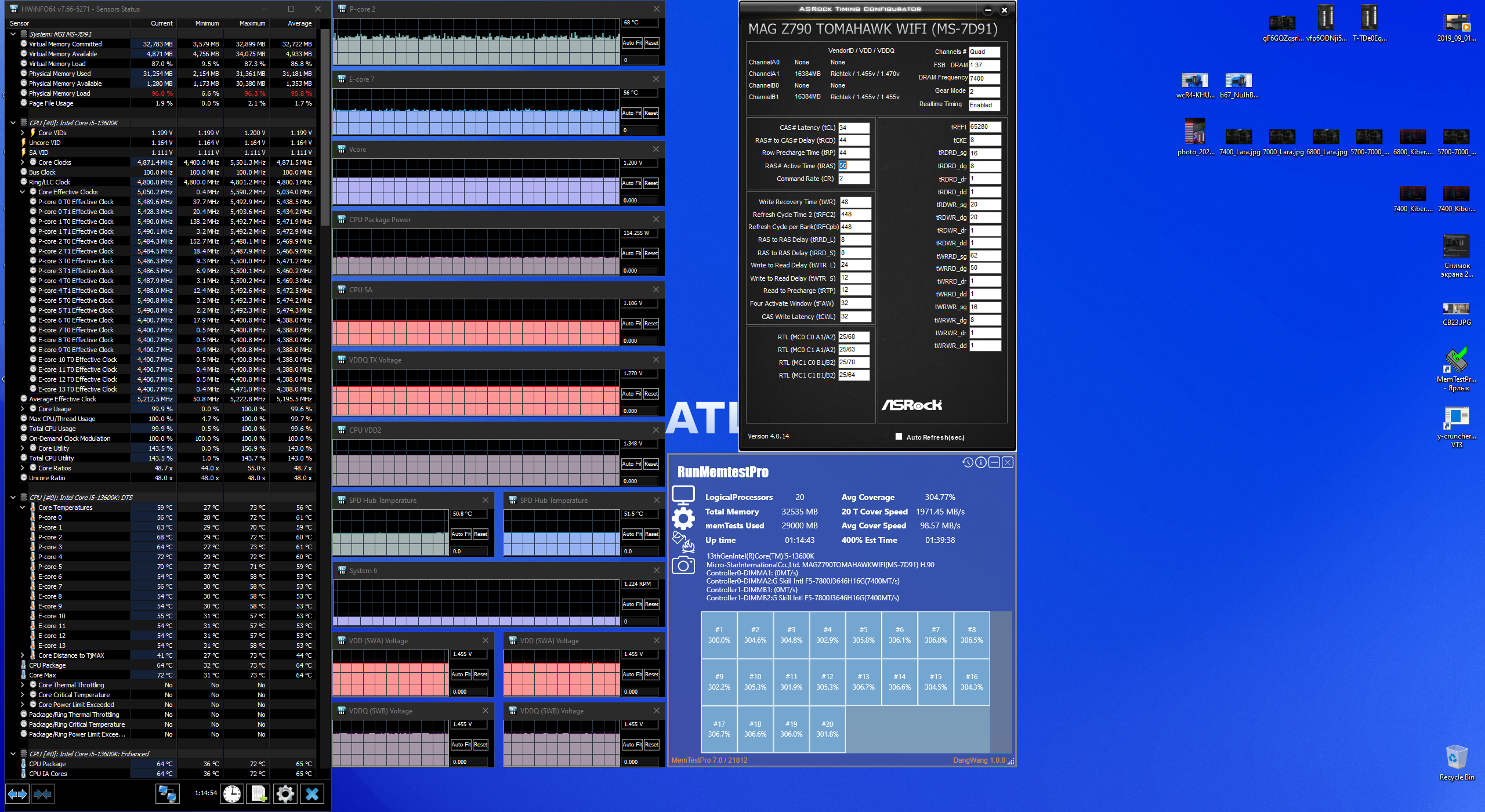 Это так можно и загнаться, 12 часов прогнал, а где вероятность что на 13-ом не будет ошибка?... У меня рабочий стабильный профиль 7000 32-40, проходит все тесты, в игре стабилен. Его я могу на любом биос настроить и он будет работать без ошибок. А 7400 34-44 пока не гонял все эти тесты по пару часов, но как и говорил уже косяков с вылетами и фризами нет, необходимый минимум есть, как пройду все эти тесты с запасом, выложу скрины тут