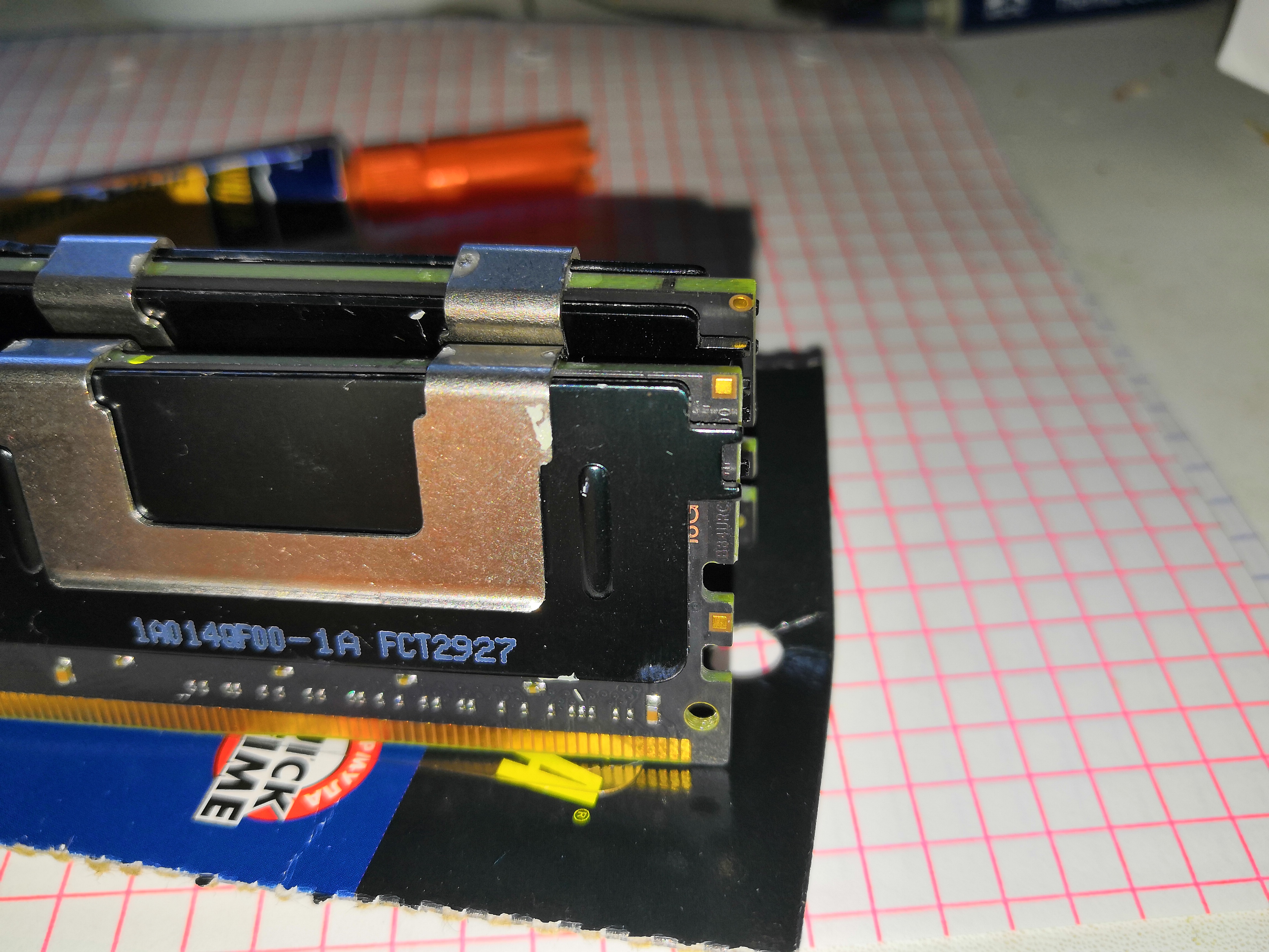 Итак, голая память, защелки и радиаторы от старой серверной памяти