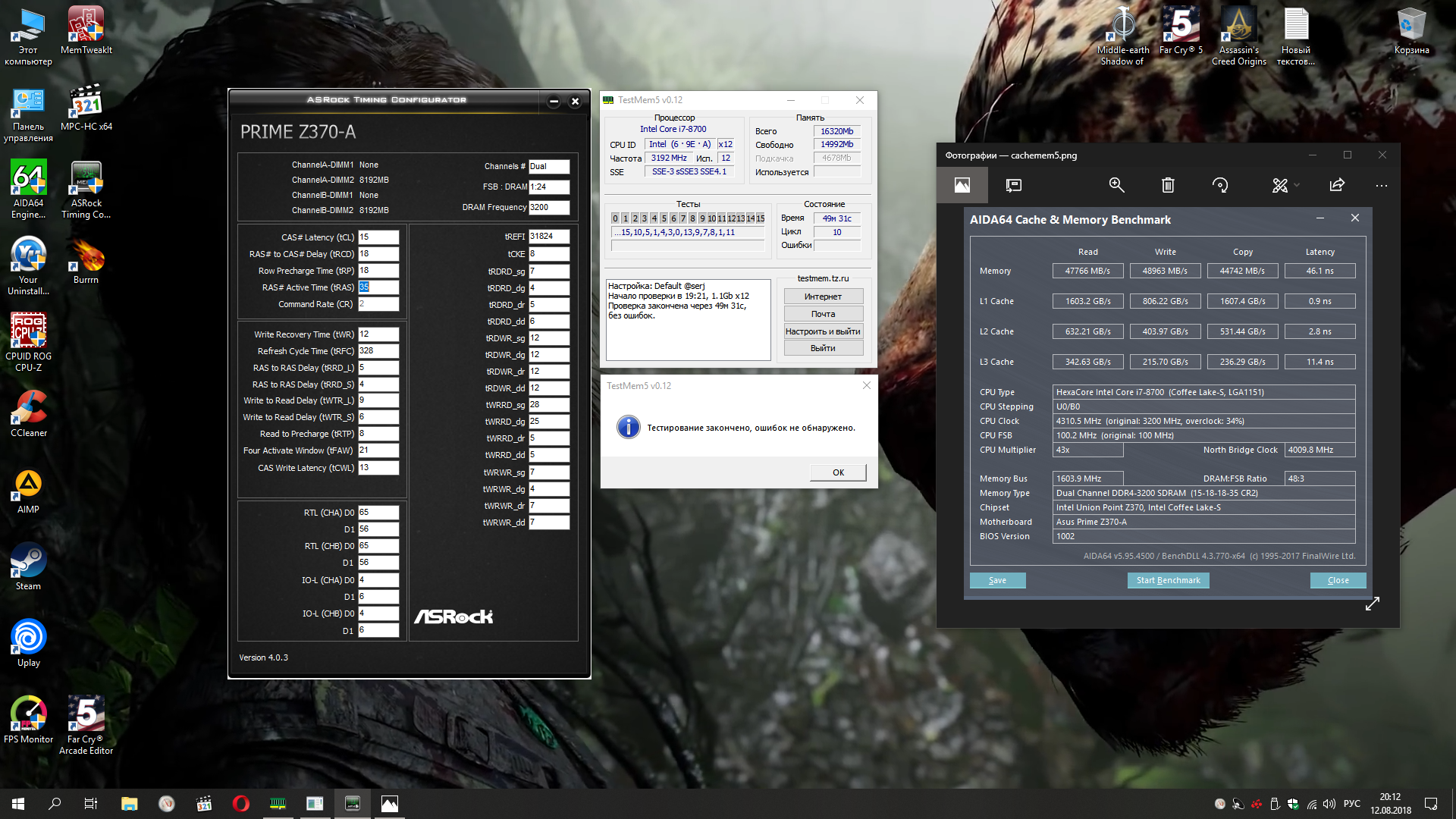 Вообще обалденный результат, поздравляю! А что за фишки с мп ASRock? А про ASUS скорее слышал такое Если получится, завтра соберу стенд на Z170 и погоняю свой B-die c такими же таймингами, посмотрим на результаты... Мои BB2 кстати сделаны 22/18 судя по SPD.
