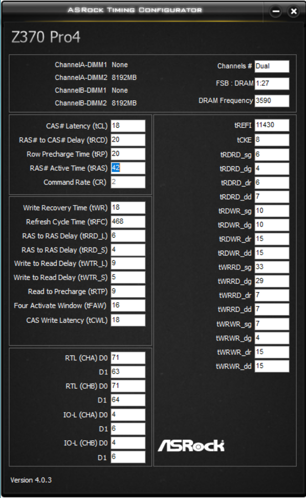 tRASmin=tCL+tRCD+2 WTRS/L устанавливаются в биосе через WRRDdg/sg согласно формуле: WRRD_sg=6+CWL+WTR_L WRRD_dg=6+CWL+WTR_S WR - через WRPRE (для матплат ASUS): WRPRE=4+CWL+WR RTP - через RDPRE (для матплат ASUS) RDPRE=RTP