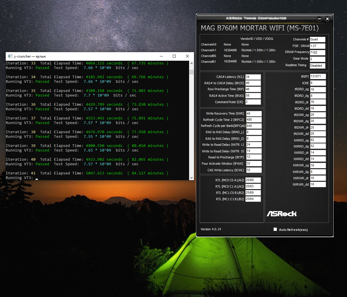 а ты на чем сейчас бегаешь? По 8000 на 13900, тем более разогнанном, есть нюансы. У меня на айке лучше работает сочетание Intel MRC mode + slow training, у Димона Intel + auto. Второе: все упирается как минимум в кархе в малые ядра. Точнее, в кэш. Далее, подбор Л2 вольтажа малых строго зависит от СА. Нужно подбирать их сочетание. Про пару перезагрузок после треньки даже и повторять не хочется. Зажатую по третичкам память стабнуть еще труднее на айке Но зажатие того стоит, спасибо, Димону. Приход по 2-3 гига везде и 2 нс в минус. А, ну и да - ставь воду