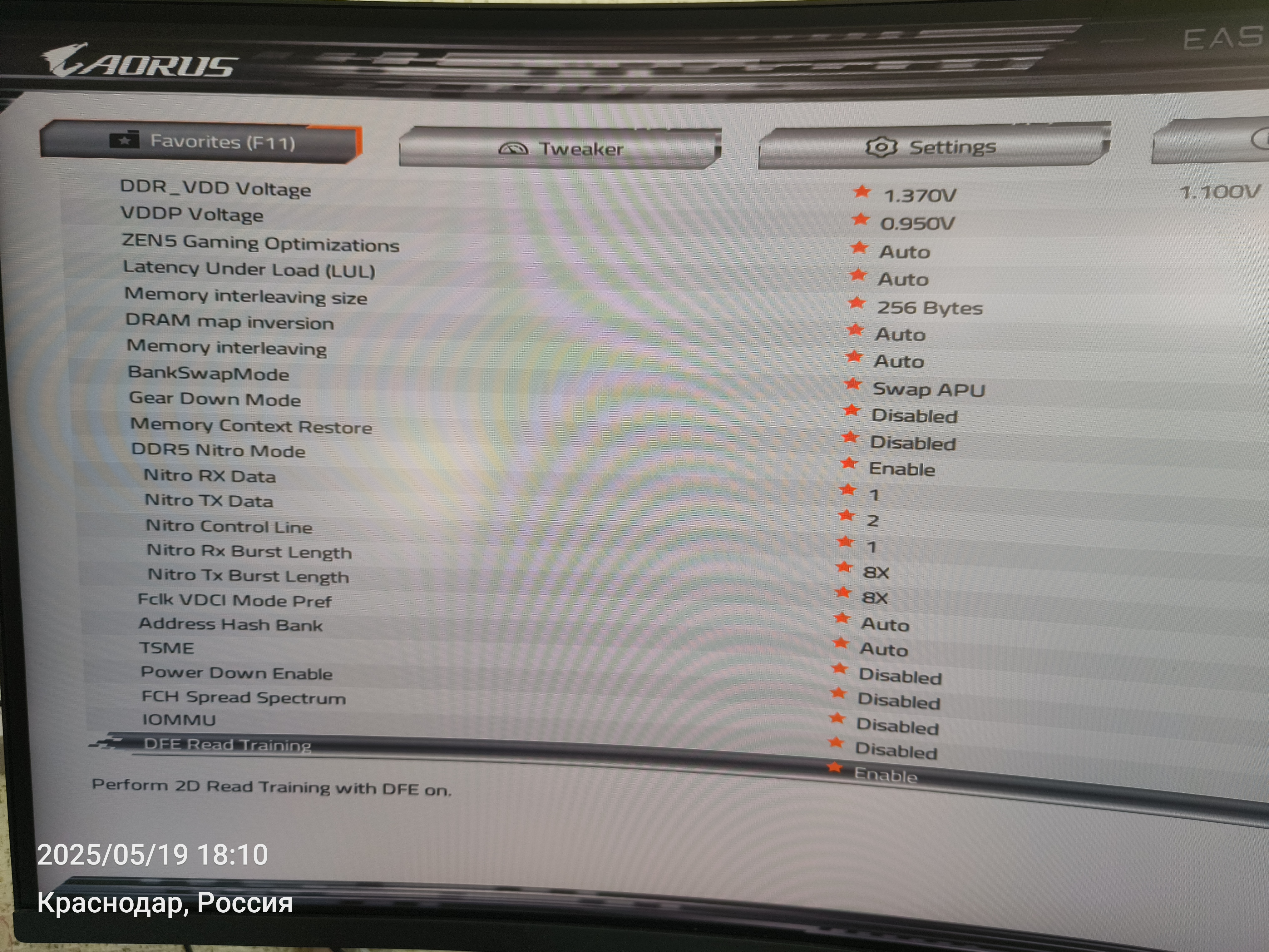 Core Tuning Config ( как и Zen 5 Gaming Optimization) - Legasy (минимальная латентность в аиде, но типа скорость ПСП ниже), или авто или level 1, level 2 - написано упор для игр У себя оставил в Auto, пробовал Legasy - да, задержка сильно падает (с условно 67нс до 58нс в аиде примерно), но ПСП падает и кадры в играх. Latensy Under Load (LUL) - также написано что при активации увеличивается латентность при нагрузке (Enabling may improve latency in heavy BW scenarios. May slightly reduce peak CCD BW). Оставил в Авто. Memory interleaving size - 256 Byte поставил как в шапке написано для минимальной латентности, не знаю правда что это и на что ещё влияет (это настройка, которая управляет размером чередования блоков памяти. Она изменяет значение бита, с которого начинается чередование). Память - 2*24гб у меня DRAM Map inversion - что такое не понятно. BankSwap Mode - оставил на SWAP APU как рекомендовали, опять же кто-то может разьяснить на что это влияет и что лучше ставить? (хотя вот например тут http://virtmachine.ru/bank-group-swap-c ... biose.html советуют отключить. Но не знаю это тоже самое или другой параметр?) Gear Down mode - Disable, я так понял лучше отключить и на отключеном настраивать память, выше ПСП и ниже задержки (на форумах пишут что скидывает нечетные тайминги на четные, при этом стабильность снижается). Но поточнее что это и почему лучше отключать? Memory Context Restore - тоже отключил, я так понял это означает постоянную "тренировку" памяти при старте компа, увеличивает время загрузки (правда итак не более 25-30сек примерно до полной загрузки), но типа если всё настроено можно и оставить чтоб быстрее грузилось. Что такое вообще "тренировка" памяти? Как она влияет на скорость работы и стабильность или это просто на время загрузки влияет и всё? FCLK VDCI Mode Pref - написано что если активировать то будет стабильнее на высокой частоте FCLK и напряжении но увеличатся задержки. Не пробовал, оставил в Авто. Adress Hash Bank - что такое кто знает? TSME - как рекомендовали выключил, как я понял какое-то шифрование в биосе, типа если не используем то смело отключаем. Power Down Enable - отключаем (настройка в BIOS, которая позволяет включить или отключить поддержку энергосбережения для оперативной памяти. С отключенным более стабильно всё работает) FCH Spread Spectrum - отключаем. Но что это такое? Гугл точно не знает, типа что-то с частотой FSB связанное, как я понял по поиску при отключении частота должна быть более точно 100 а не 99.8 скажем . IOMMU - отключаем, это встроенная видяха в проц. (ну, кто использует - оставляем). DFE Read Training - лучше включаем, какая-то тренировка памяти.