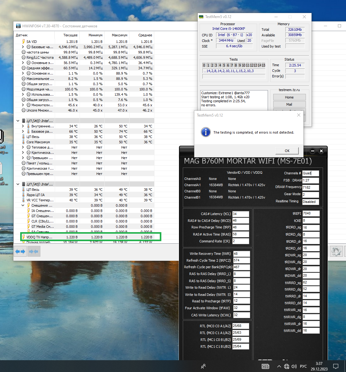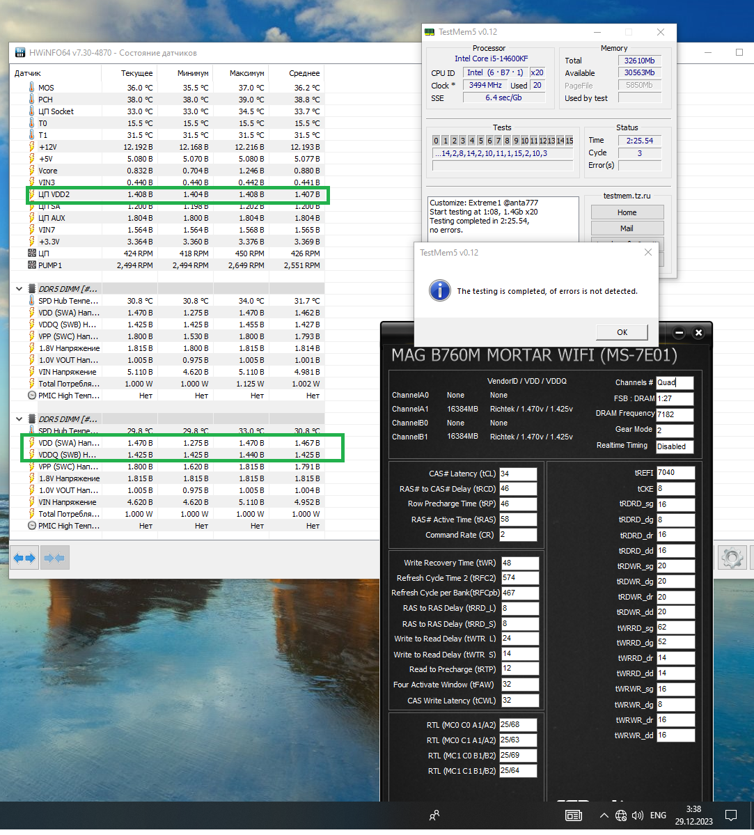 SA=1.2 CPU VDDQ=1.22 CPU VDD2=ищем Dram voltage=1,47 DRAM VDDQ Voltage=1,425