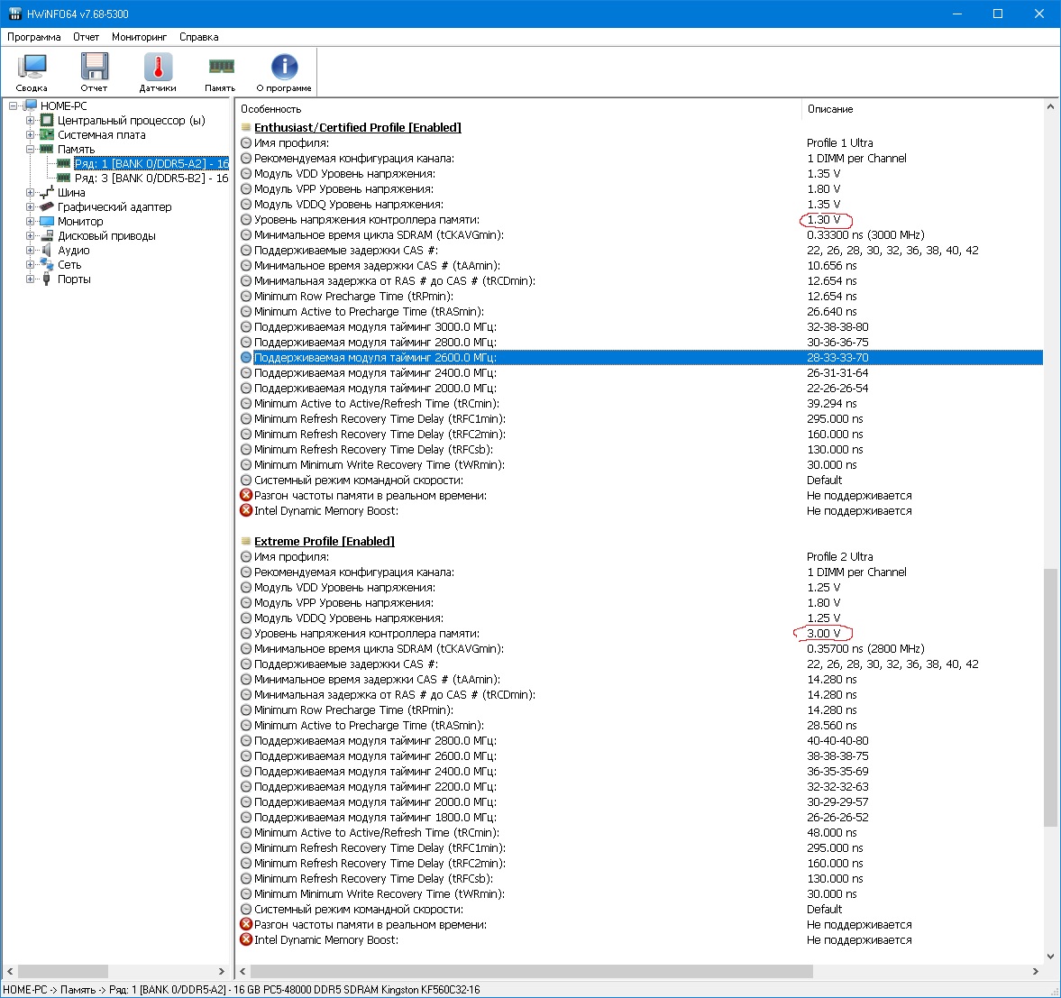 И еще вопросик, если смотреть в aide XMP, в профиле есть пункт: "Напряжение питания (Контроллер памяти)" это же VDD2 ? В основном профиле там 1.3V, а в других профилях дичь - 3.0V