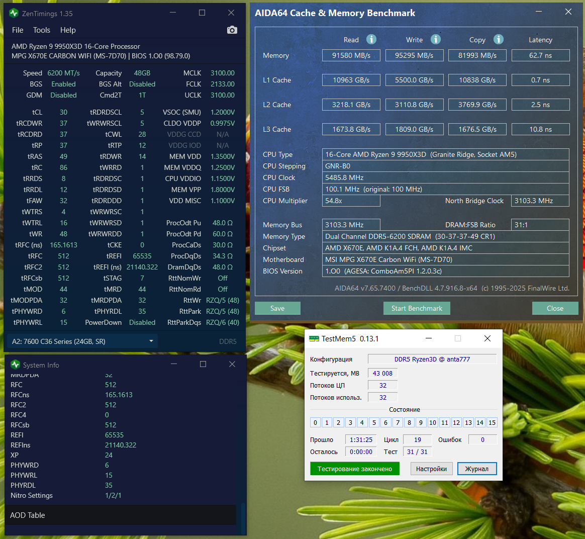 Добрый день, поменял процессор ruzen 7 7800x3d на ruzen 9 9950x3d, хотел сначала купит ruzen 7 9800x3d за 54000 рублей но доплата за 16 ядерник была всего 4900 рублей. Все осталось по старому частота 6400 Мг как была не стабильна так и осталась.