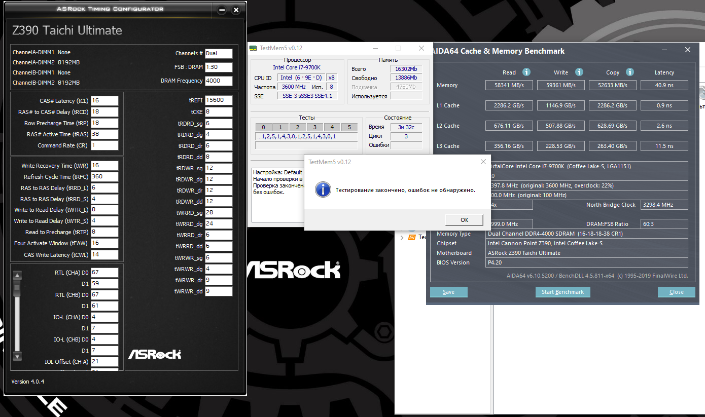 анта777, по поводу Ваших слов "Тренировка прошла прекрасно. Из-за чего выбивало ошибку в мемтесте? И почему первичные такие высокие?" ошибки сыпались пока стояло 6 на tRDRD_sg когда поставил 7 все отлично стало, ошибок не было! По поводу первичных таймингов я думаю что ни tCL ни tRCDtRP ниже не запустятся, а tRAS запустится ниже, но я так понял, что оно высчитывается по формуле и стоит у меня правильное, если я не прав, подскажите, что можно попробовать поставить ниже, я попробую, заранее спасибо! Еще вопрос хлтел задать Вам, я разогнал проц и хотел спросить нужно ли турбобуст отключать, а то он у меня включен!