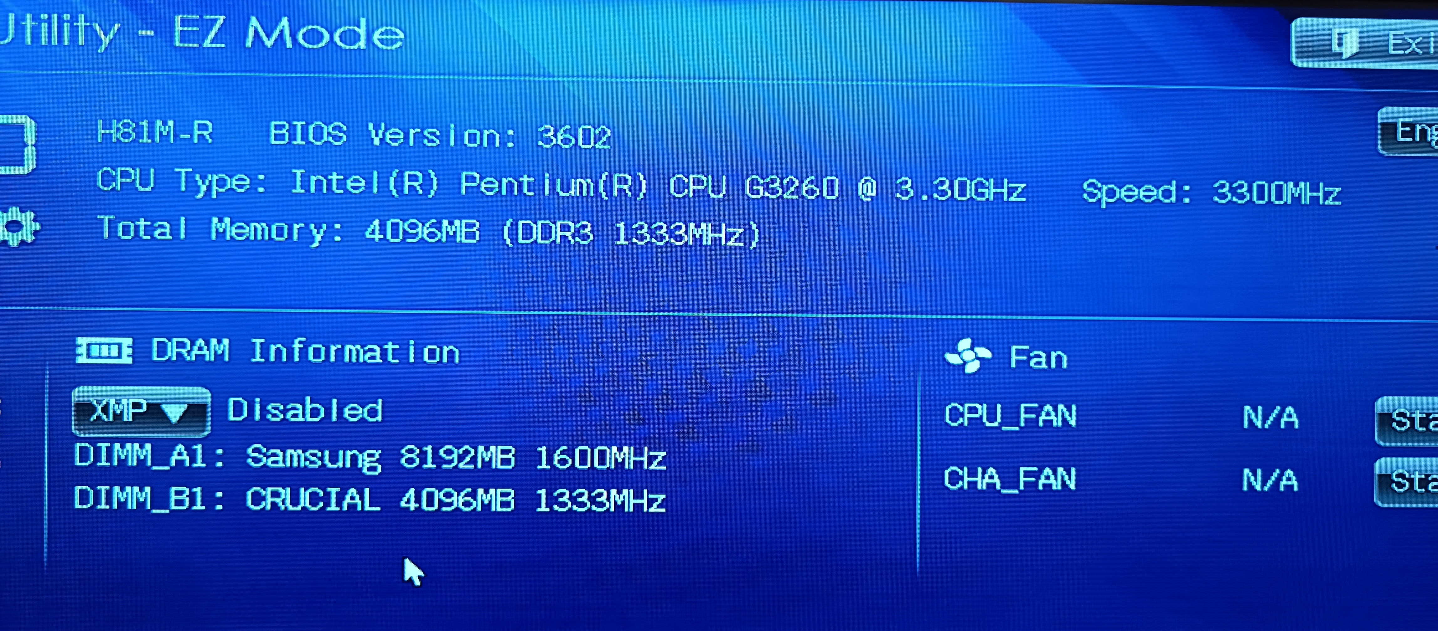 Всем привет. Подскажите, пытаюсь реанимировать старенький комп, процессор G3260 на матери H81m-r, купил память 8+8 1600, но к сожалению с ней комп не стартует, ставлю старую 4 1333 + 8 1600, стартует биос, в нём видны обе планки, но используется только 4. Указано что проц работает с 1333, может быть из-за этого?