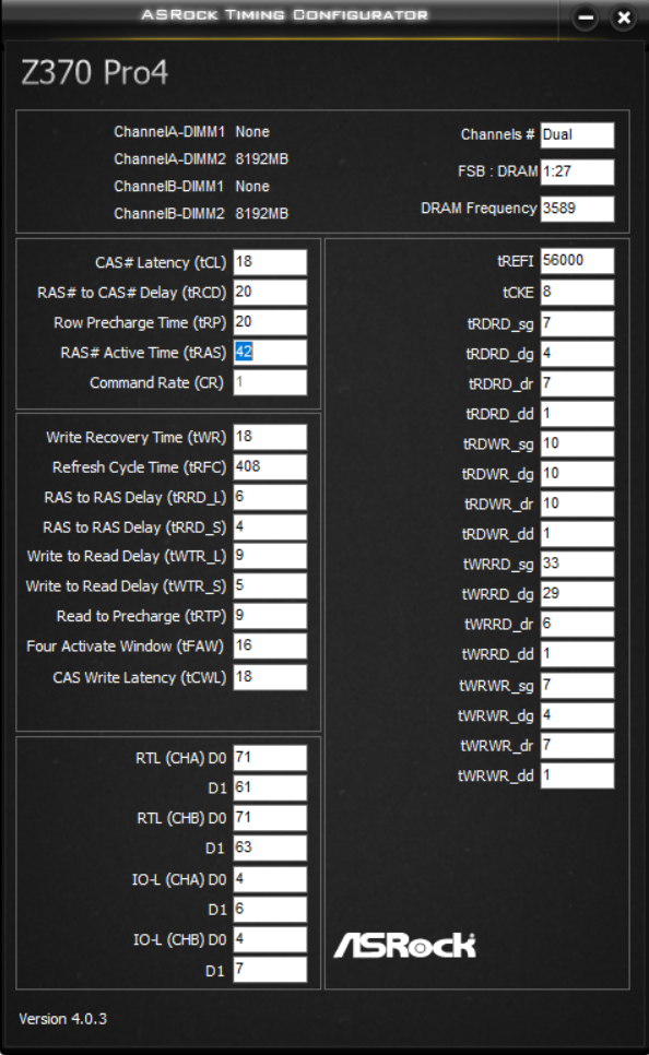 RRDL=4 WTRS=4 WRRDdg сами сможете подсчитать? Затем tREFI поднять в 4 раза. Потом заняться tRFC, можете пересчитать свое прежнее значение на эту частоту памяти. 520 у меня по вашим данным вышло. На этом все.