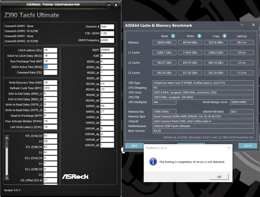 такие вот дела, экстрим прошел за 1:30 на 10 минут быстрее после перехода с cr2, окно случайно закрыл когда не нужные процессы выключал) латентность упала на 2ns. trefi 31200 в середине второго прогона вылезла ошибка, 26к стабильно.