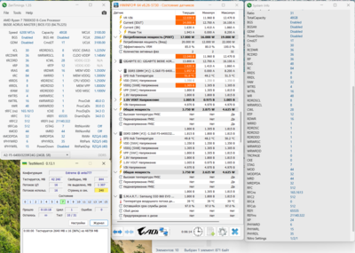 Дефолтный XMP - не стартует. По-умолчанию плата запускает память на 3600Mhz, классика. Но "Memory Try It" вполне удачно тренит и меняет сопротивления, и запускает память на 6200 без проблем. Latency Killer включен, дает в AIDA64 -5ns ровно. За эти дни я видел ощутимо лучше результаты с 128-192гб памяти, даже на 6400Mhz и где просаживали Latency ниже 60ns, и разгоняли ПСП чтения до 90Гб/сек, но меня и мой результат устраивает. Я утомился за эти дни гонять TM5+Anta777Extreme, 1usmus_v3, Karhu, Y-Cruncher VT3, Linpack Extreme, HCIDesign в 32 окна до 999%, пожалуй с меня хватит жарить проц и память. Дальше жать не планирую на этом компе. tRTP на 12 тянуло за собой снижение tRAS и tRC, что давало по 1-2 ошибке раз в 30-40 минут теста. Так что оставил на 14. tRFC ниже 520 не спускалось, оставил на 540 (180ns). Плата запускает память и на 6400Mhz, но сыпет ошибками с авто таймингами и авто вольтажами. Не пытался стабилизировать. Для себя просто решил оставить 6000Mhz, FCLK выше 2133 тоже не пробовал (не интересно). Может выше пойду уже на Zen6, если до него доживу, и то думаю это скорее будет спортивный интерес. Советы по дальнейшему ужиму таймингов - не принимаю, устал, не хочу, не могу, не буду ))) Дальше я разве что буду пробовать снижать DRAM вольтаж до ~1.37V, и пожалуй попробую SoC до ~1.2, но это как нить потом.