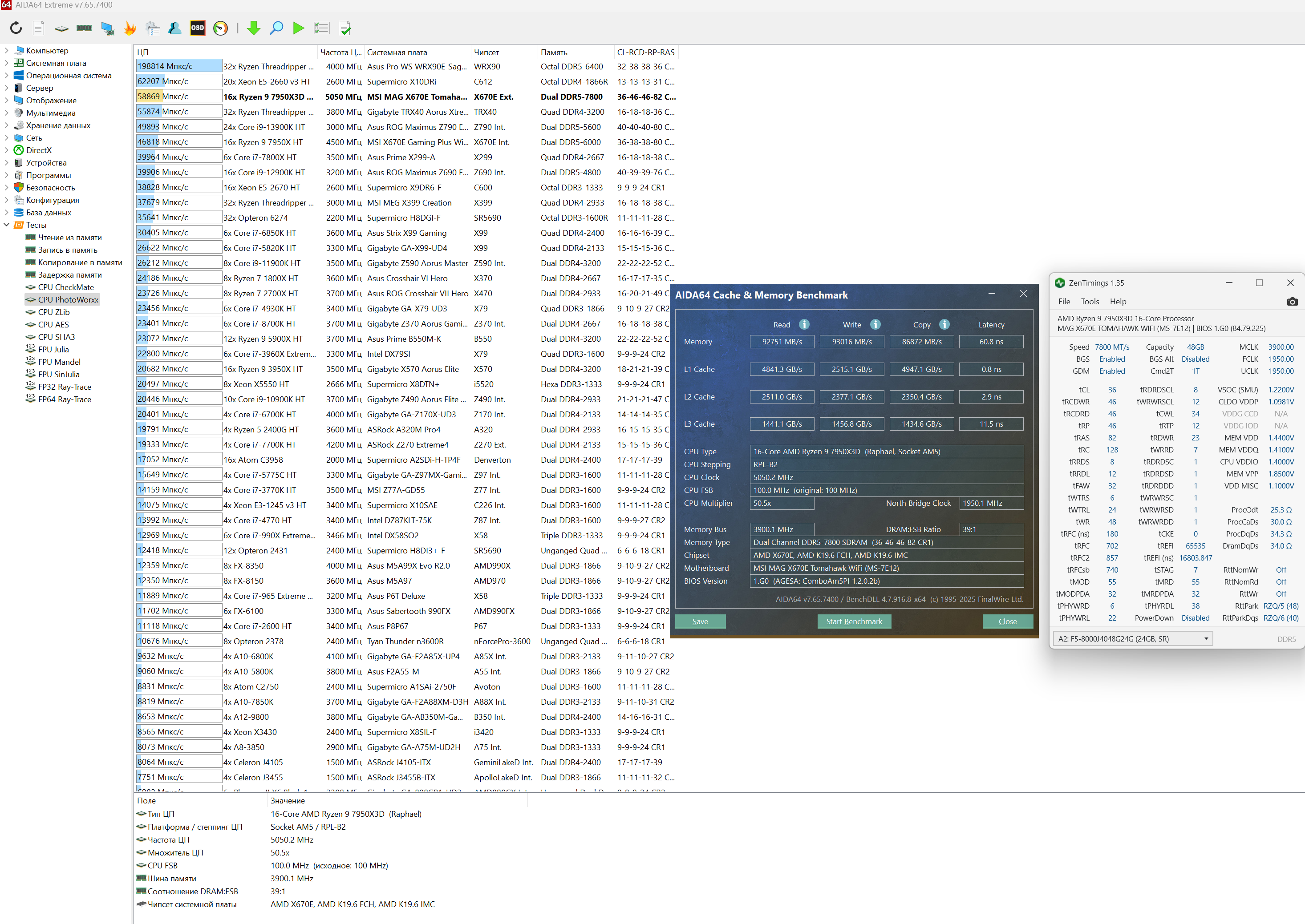 Это ответ на утверждение, что нет смысла настраивать память. 8000cl36 у меня работает (по наблюдениям авторитетных оверлокеров 1:2 больше подходит для ryzen9 т.е. ваш случай), я для себя предпочитаю настраивать cas <8,5ns. У вас аналог 6000cl28 c IF в районе 2167. Ваш конфиг определенно должен ехать на 8000. Обновите биос последняя agesa 3b, чипсет. rttwr off у вас в авто? или вы его отключили, также procODT попробуйте увеличить для 8000, настройки nitro невидно в zt.