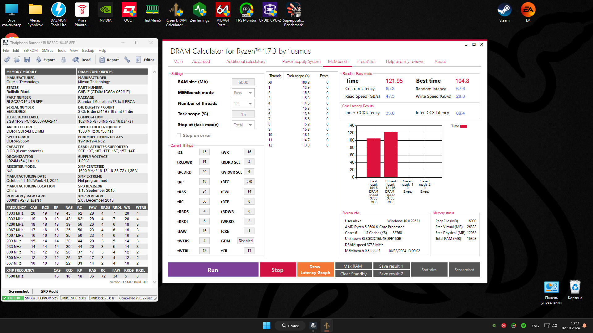 Спасибо за софтину. Там написано, что нужно Secure Boot в биосе отключить, я так и не нашел как это сделать на своей мобо, но прога запустилась и тест пошел, только частоту памяти некорректно определяет - вместо 2200 было написано 2966.