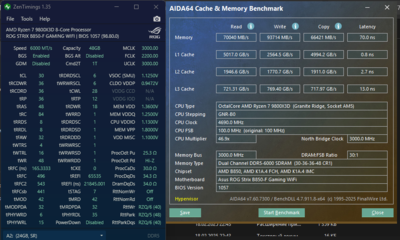 У меня PBO +100 CO -30 добавляет ~0,3ns (54,1 против 54,4), но увеличивает скорость всех кешей и уменьшает задержку L2, L3 кэша. Отключите виртуализацию если она вам не нужна, также у асус есть свой аналог убийцы заржки от msi (не знаю как он правльно называется тк у меня асрок). Я б ожидал от вашего профиля не больше 62ns. Напряжения у вас на минимум для GDM off, если вы его включите и еще уменьшите напряжения это будет не чистый 1T. Решающим для игр по убыванию: объем кэша, производительность на ядро, производительность памяти, есть игры которым все равно какой у вас проц и память (до разумного предела) они упираются в ВК.