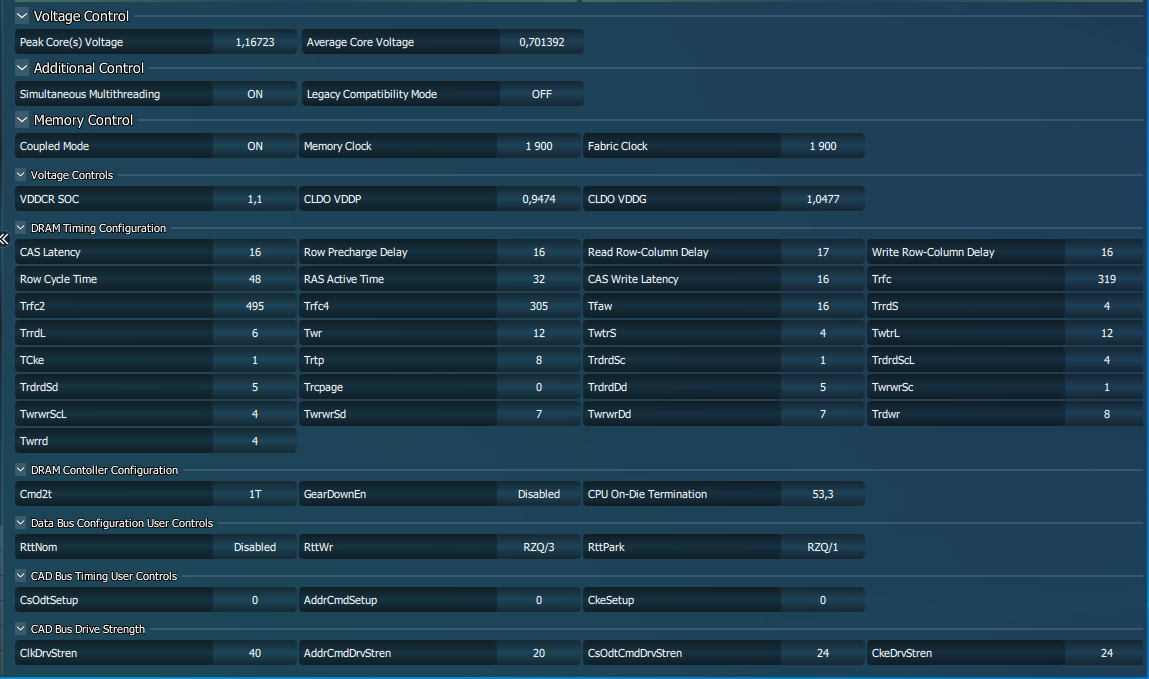 Любой вопрос с проблемой настройки памяти, подкрепляйте скрином ZenTimings, обязательно указываем DRAM Voltage. Убедительная просьба заполнять профиль и подпись на форуме, указывая свои комплектующие.