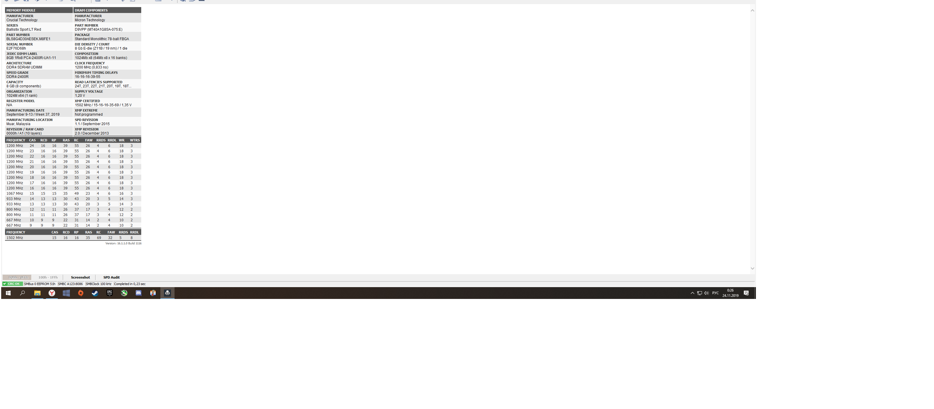 [img]Ссылка на скрин[/img] Для сбора статистики по установленным чипам памяти просьба прикладывать скрины программы Taiphoon Burner и указывать напряжения на DIMM, IO и SA![/color]