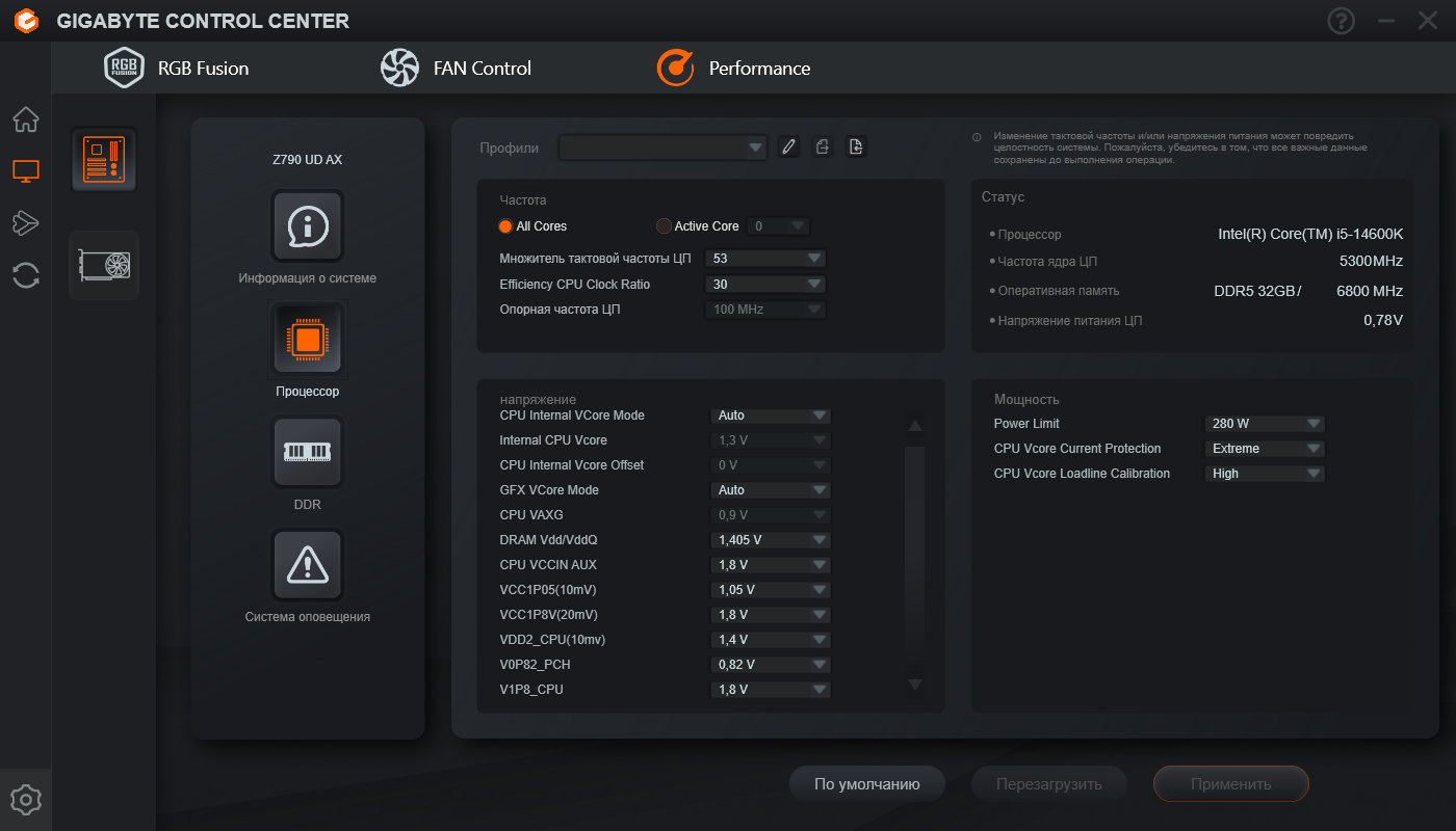 Чисто попробовать вбил... На подобных напряжениях и на памяти 1.4-1.38 VDD / 1.3-1.35 VDDQ тест vst и двух секунд не работает на частоте 6600... Сейчас поставил для 6600: SA 1.2, TX 1.22 (которое даёт полную стабильность на 6600 при прочих в авто), VDD2 = VDDQ 1.35, VDD 1.41. VT3 тест 30 циклов по 40 сек пока отпахал.