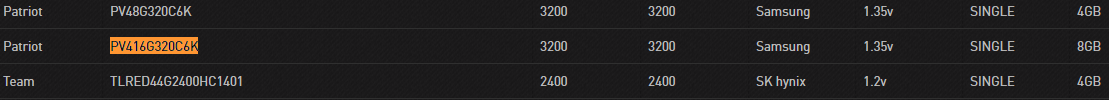 Для вариантов 2x8 Gb так же можно рассмотреть варианты покупки: - Patriot Viper Steel 4000 и 4400 Мгц (маркировка PVS416G400C9K и PVS416G440C9K), Patriot Viper RGB 4000 Мгц (маркировка PVR416G400C9K). XMP профиль в этих комплектах должен быть именно 19-19-19-39. - Team Group T-Force XTREEM с XMP 4000, 4133, 4300 и 4500 Мгц (маркировка начинается с TXKD416G4, в РФ только на Авито, либо заказывать с США). На авито брать можно модули с датой производства от 2019 года (дата у G.SKILL Trident Z указана на голограмме на каждой планке "2020 sep" - сентябрь 2020 года). Брать старый B-die за цену Яндексмаркета не советую. Перед покупкой нужно зайти на сайт Бидайфаиндер и удостовериться, что в рассматриваемых модулях действительно B-die: B-Die Finder, так же можно проверить модули по маркировке на hardwareluxx.de. Частота памяти 4000 Мгц и даже 4600 Мгц не является гарантом того, что чипы окажутся именно B-die, уже давно выпускаются модули 4400 Мгц и выше с чипами hynix D-die (например Thermaltake TOUGHRAM ROO9D408GX2-4600C19A, брать их не стоит). Так же косвенным фактором наличия чипов B-die являются тайминги tRCD и tRP - у B-die они отличаются на +1 (редко +2) или равны tCL, например 14-14-14-34, 15-16-16-36 или 17-18-18-38. Если вы видите память 16-19-19-38, то это скорее всего не то, что вы ищите (например тот же Thermaltake TOUGHRAM 4600 Мгц 19-26-26-45). Сейчас на рынке представлены комплекты памяти с чипами Samsung B-die на примере G.SKILL F4-4000C16D-32GTZR с таймингами по XMP 16-19-19-39 и напряжением 1.40V, но покупать такое и рассчитывать на разгон памяти без "отвала tRCD" к примеру 16-16-16 или 16-17-17 я бы не стал. В пример могу привести комплект G.SKILL F4-4600C18D-16GTZR с XMP 18-22-22-42, который на заявленной часте в разгоне работал только с tRCD = 20.